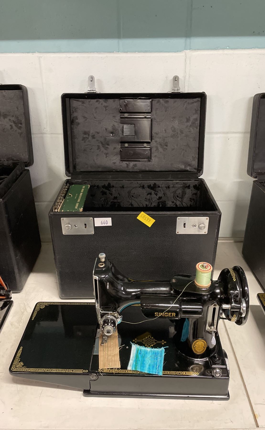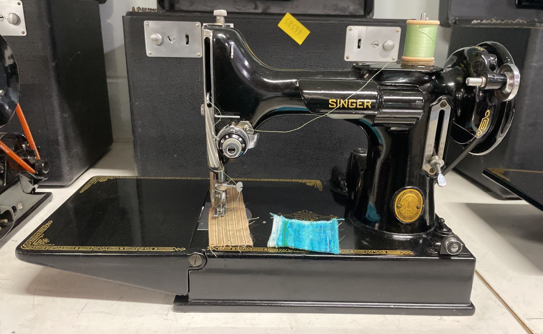 SINGER FEATHERWEIGHT 221 CAJ6-8 SEWING MACHINE WITH POWER CORD, HAND CONTROL & CASE
