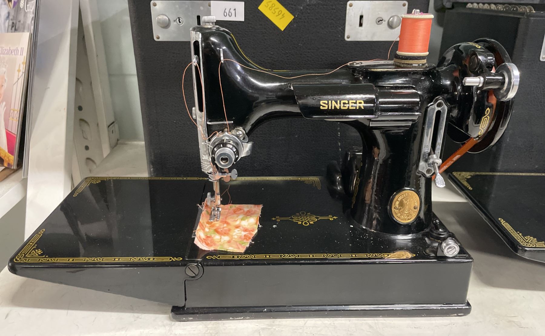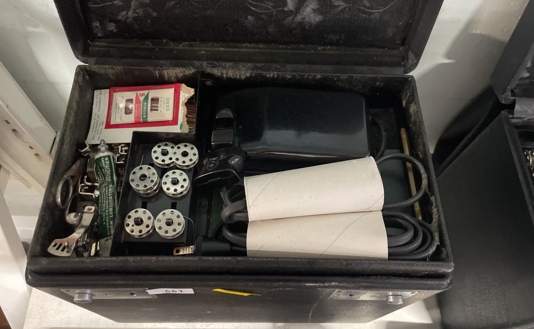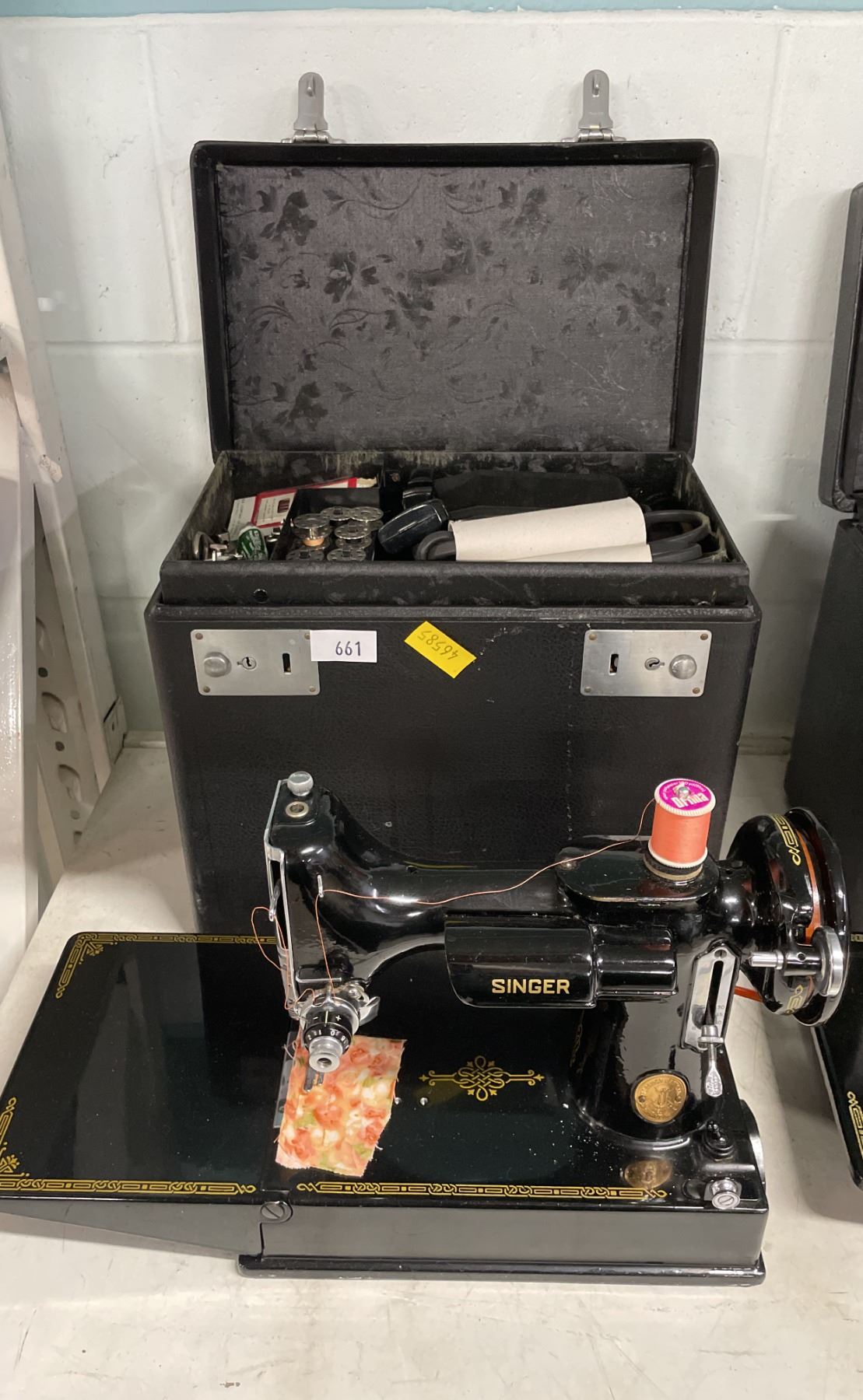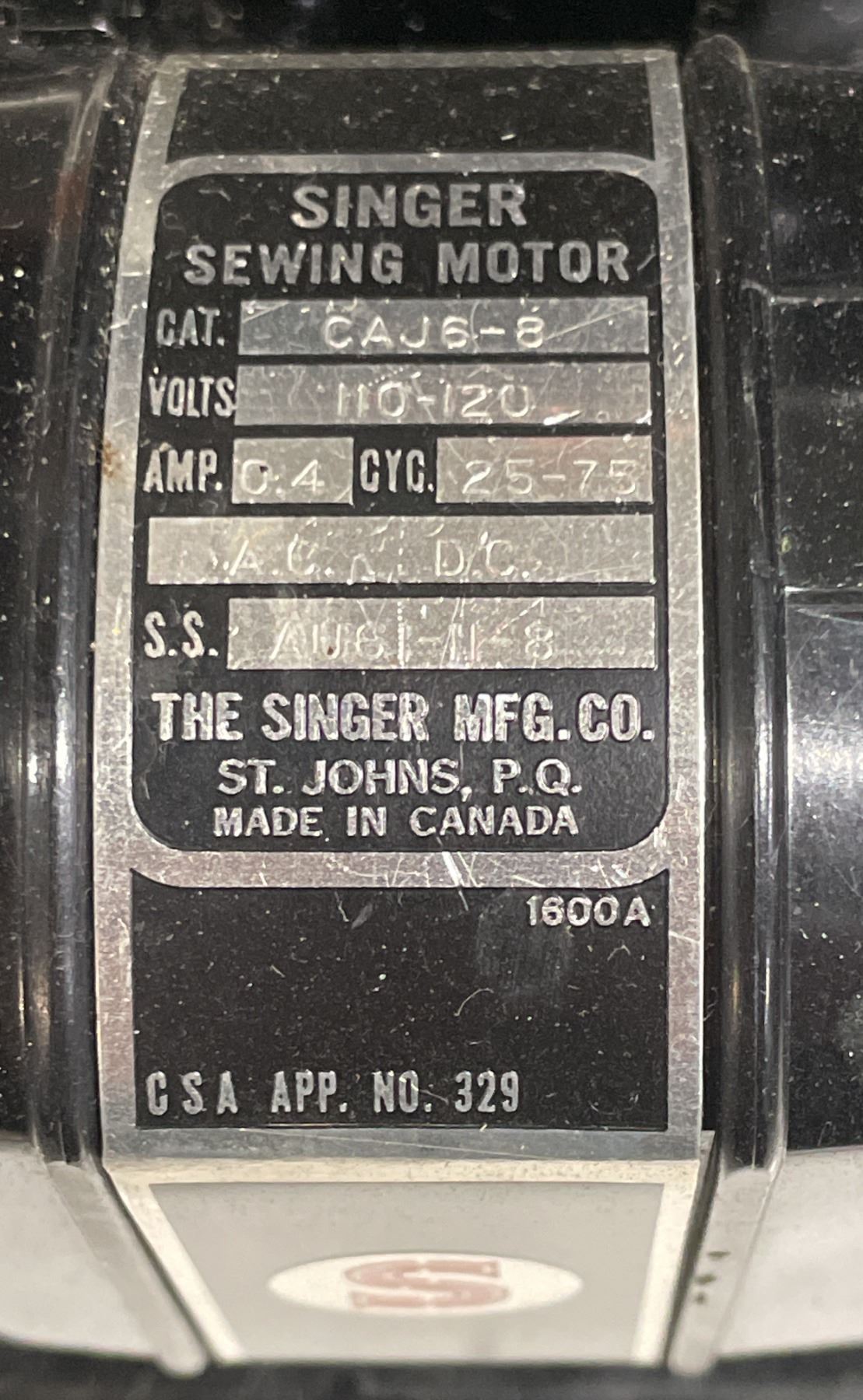 SINGER FEATHERWEIGHT 221 CAJ6-8 SEWING MACHINE WITH POWER CORD, HAND CONTROL & CASE