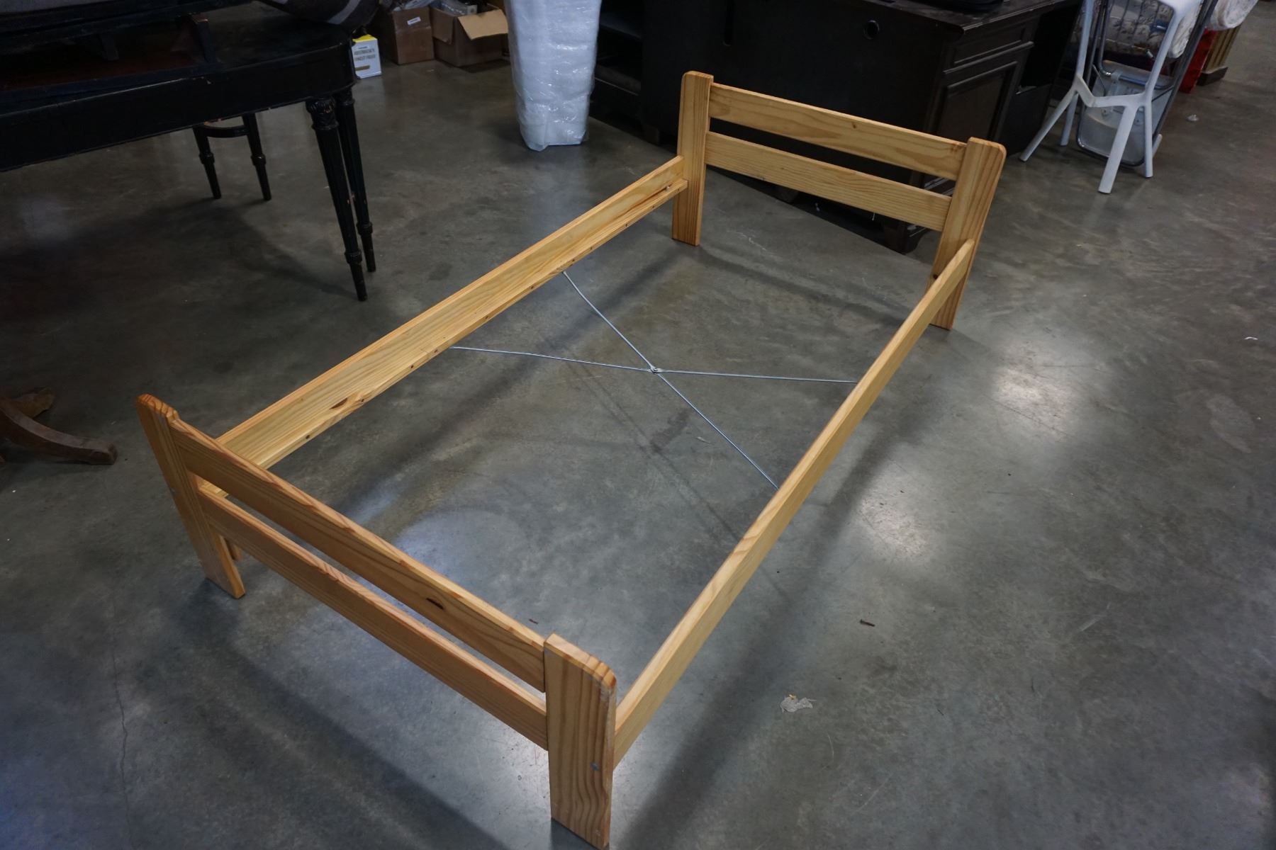 SINGLE SIZE PINE BEDFRAME AND 2 DRAWER NIGHT STAND