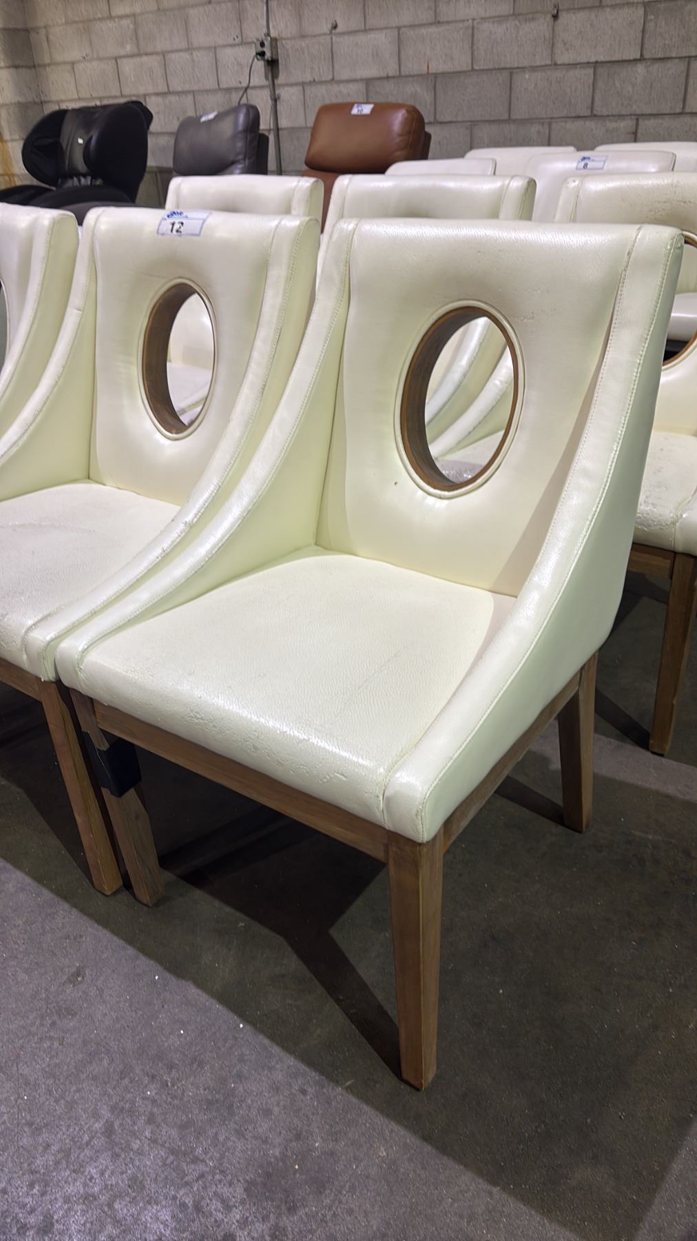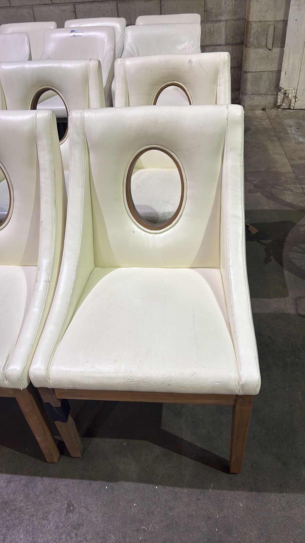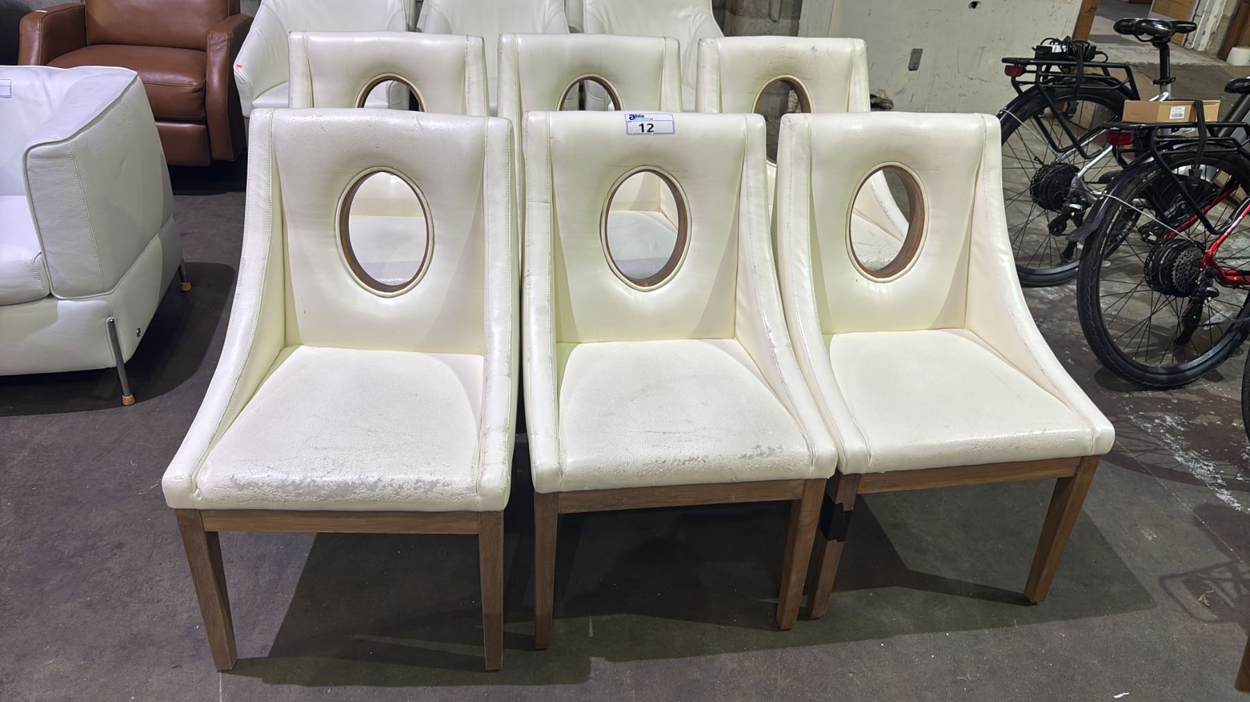 SIX WHITE LEATHER MODERN DINING CHAIRS