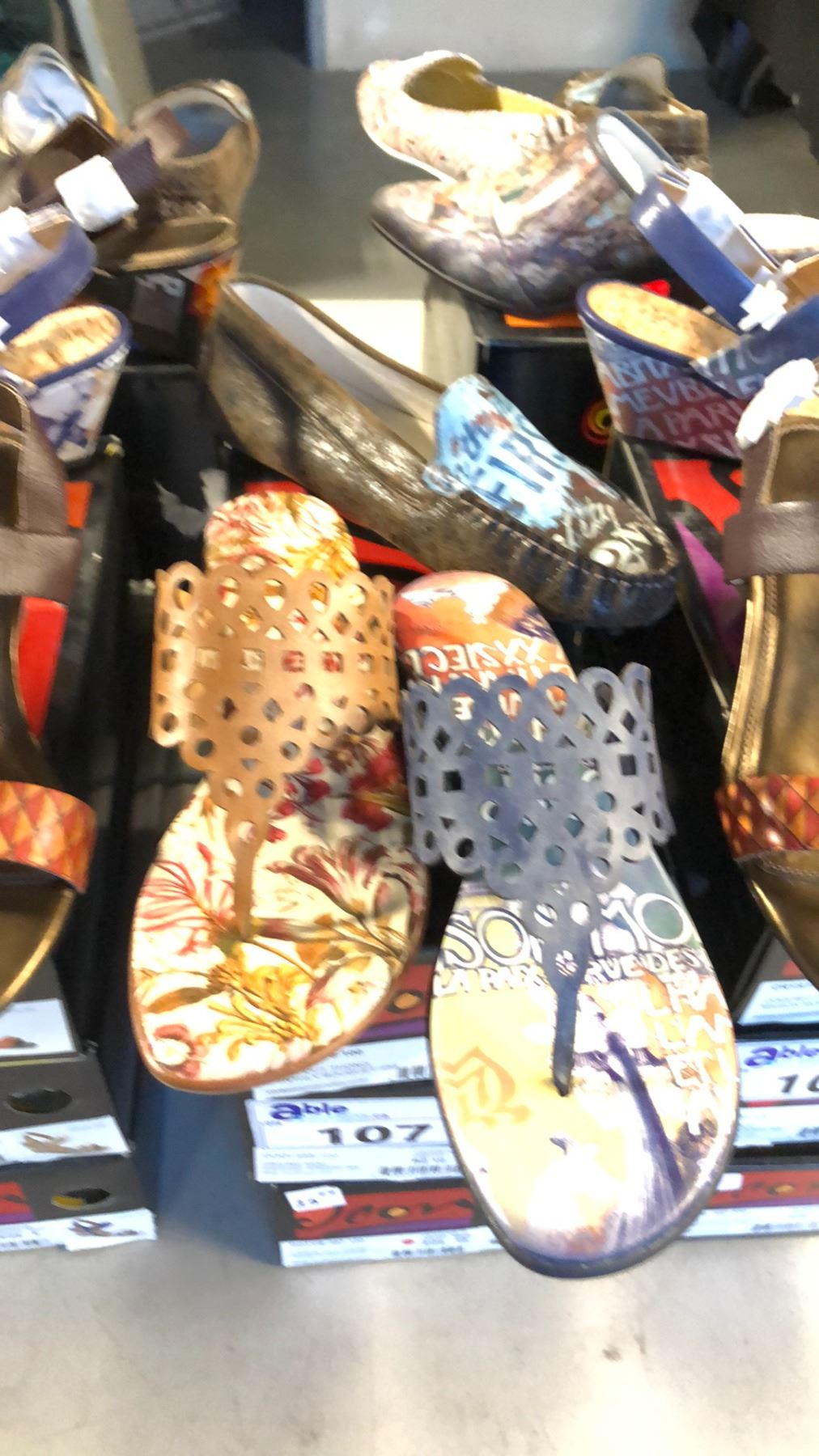 SIZE 10 EVERYDAY SORCERY DRIVING MOCS, MONTHLY BOUQUET LASER CUT THONGS, MASON MODERNE LASER CUT THONGS