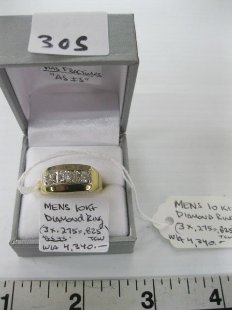 SIZE 11 1/2 MENS 10K DIAMOND RING .. 1 DIAMOND HAS FRACTURES (AS IS) W/A $4340