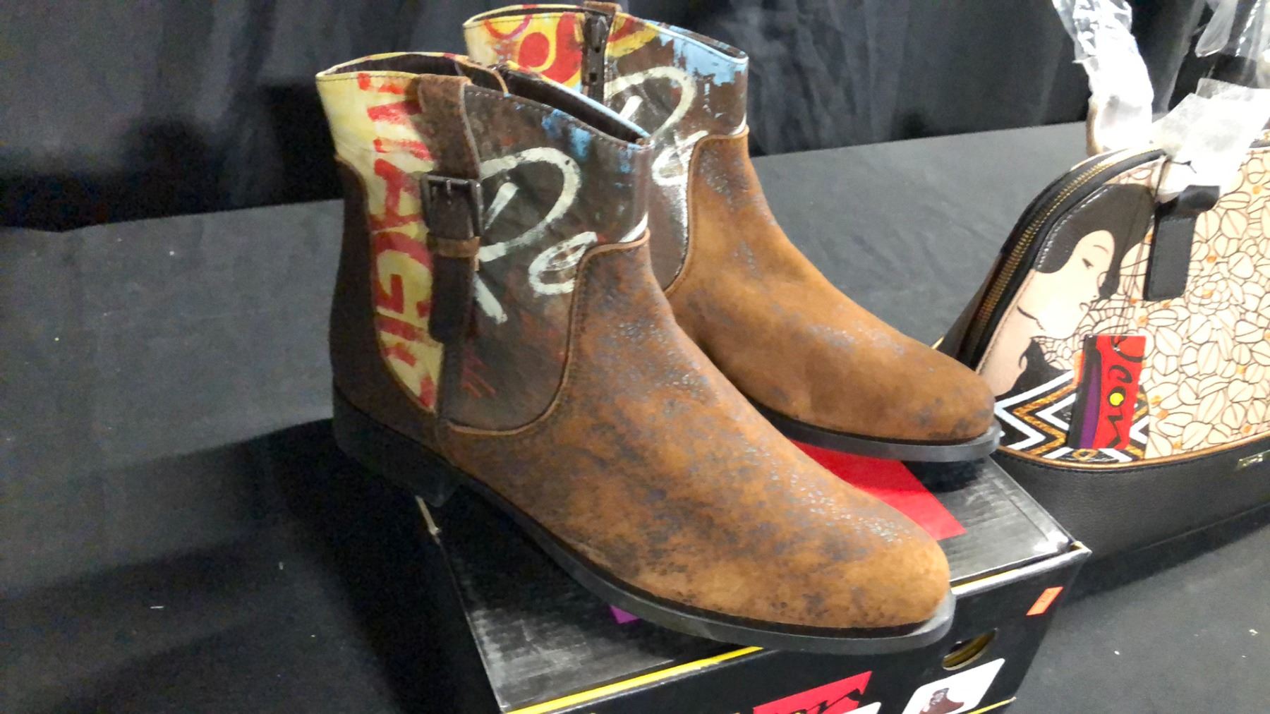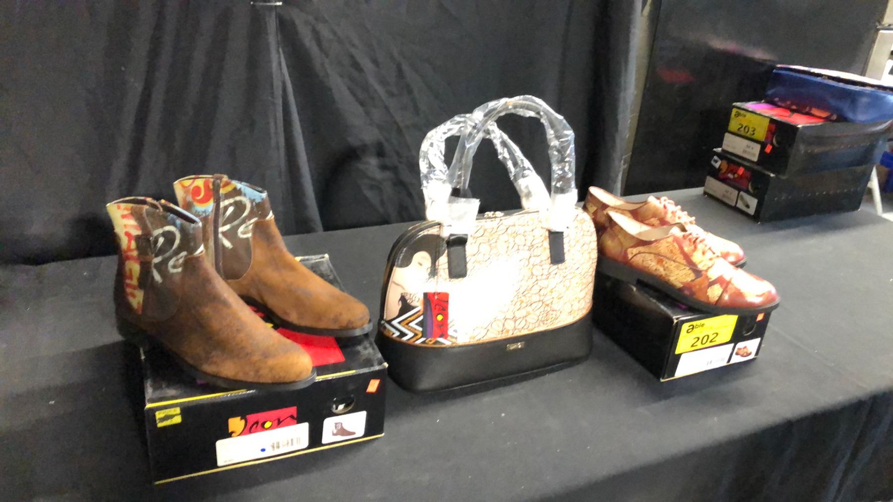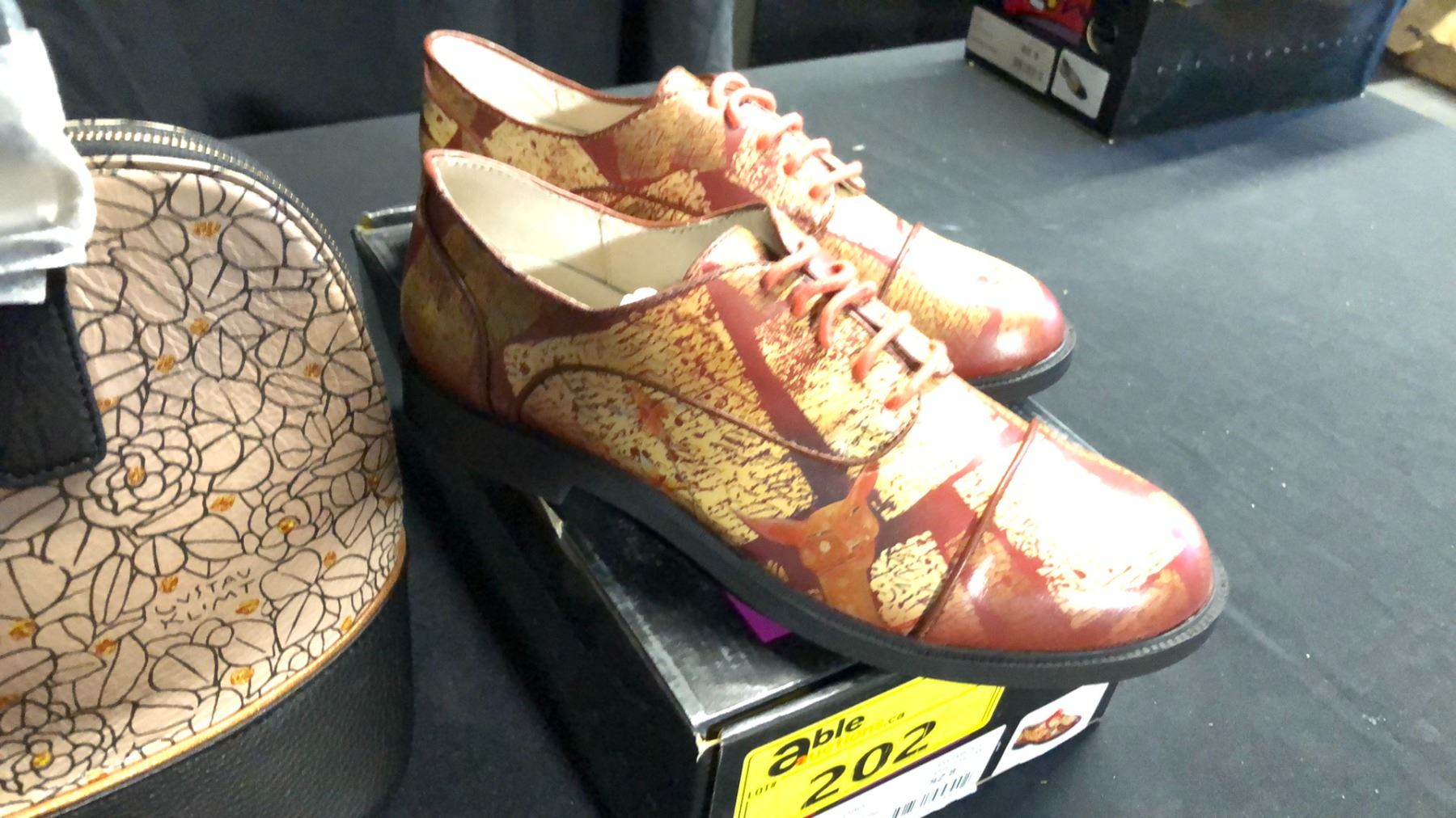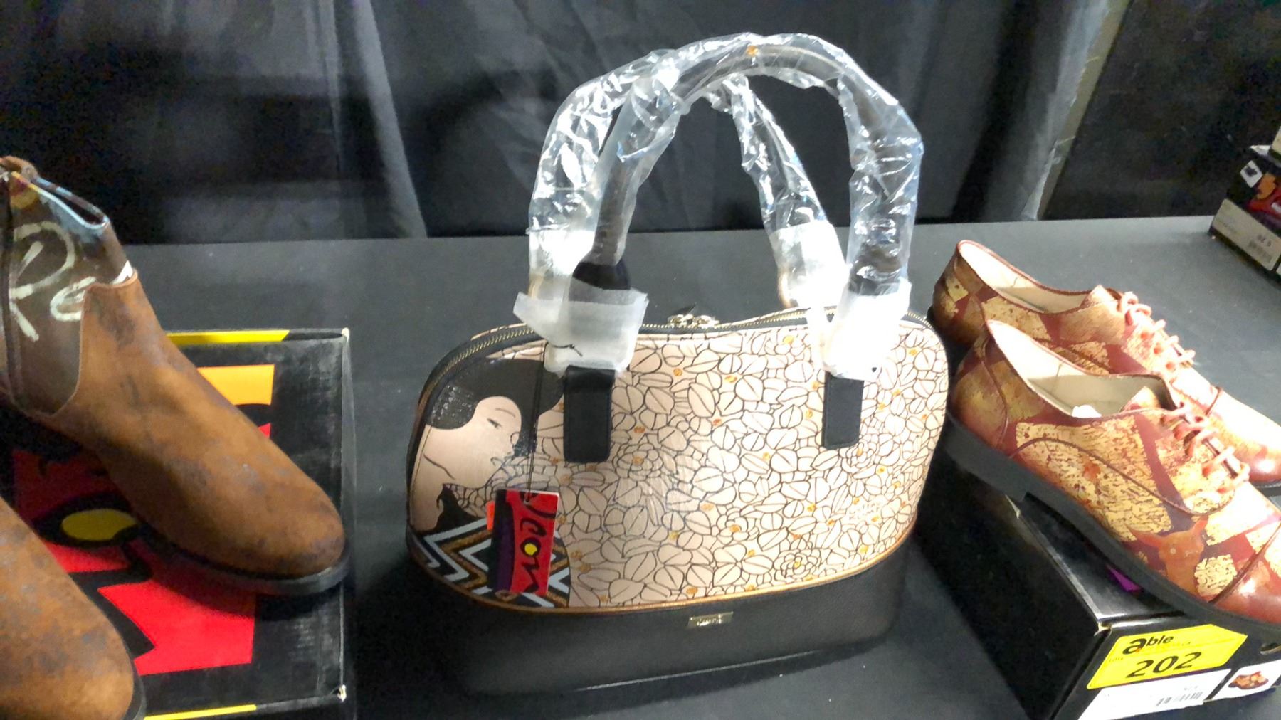 SIZE 8 SORCERY CASUAL ANKLE BOOTIES, RUSSIAN RED GOLF SHOES WITH PIPING AND GUSTAV KLIMT BAG