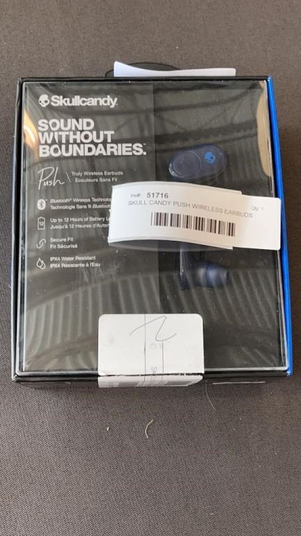SKULL CANDY PUSH WIRELESS EARBUDS WITH CHARGING CASE - WORKING