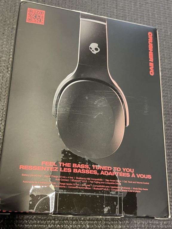 SKULLCANDY CRUSHER EVO OVER-EAR SOUND ISOLATING BLUETOOTH HEADPHONES - TESTED WORKING, RETAIL $199