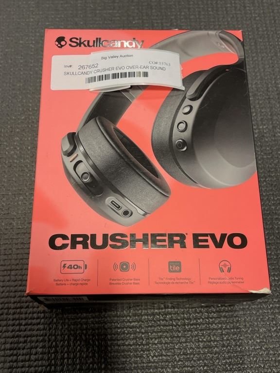 SKULLCANDY CRUSHER EVO OVER-EAR SOUND ISOLATING BLUETOOTH HEADPHONES - TESTED WORKING, RETAIL $199