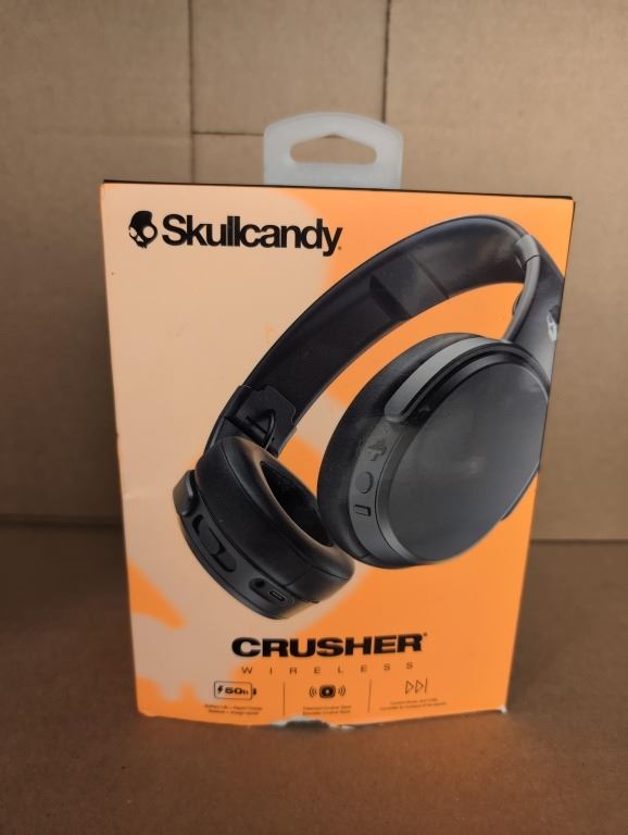 SKULLCANDY CRUSHER OVER EAR SOUND ISOLATING WIRELESS HEADPHONES WITH MIC - TESTED WORKING, RETAIL $1