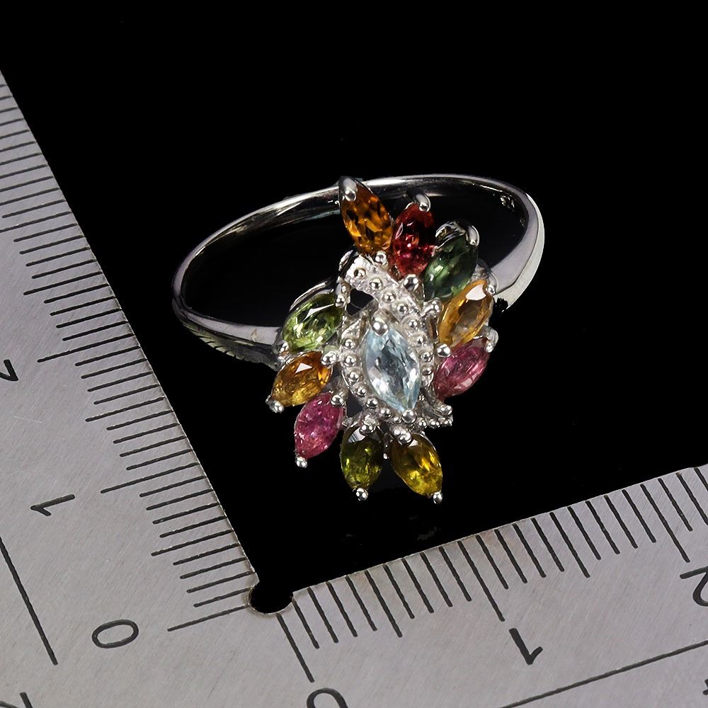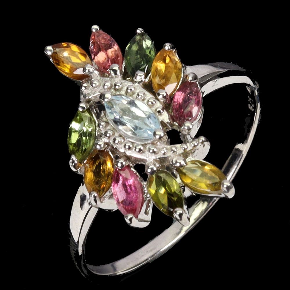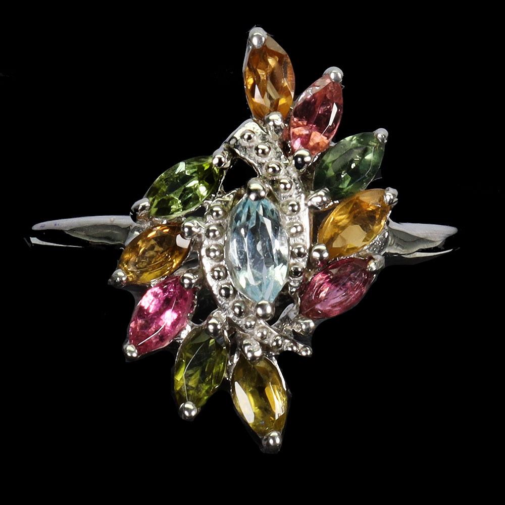 SKY BLUE TOPAZ AND TOURMALINE IN 14K WHITE PLATED GOLD OVER 925 STERLING SILVER - SIZE 8 - APPRAISED REPLACEMENT VALUE