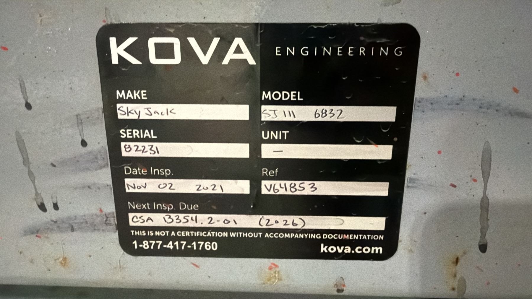 SKYJACK SJ 111-6832 ORANGE 32" X 68" INDUSTRIAL 1000 LBS CAPACITY ELECTRIC MAN LIFT WITH EXTENSION
