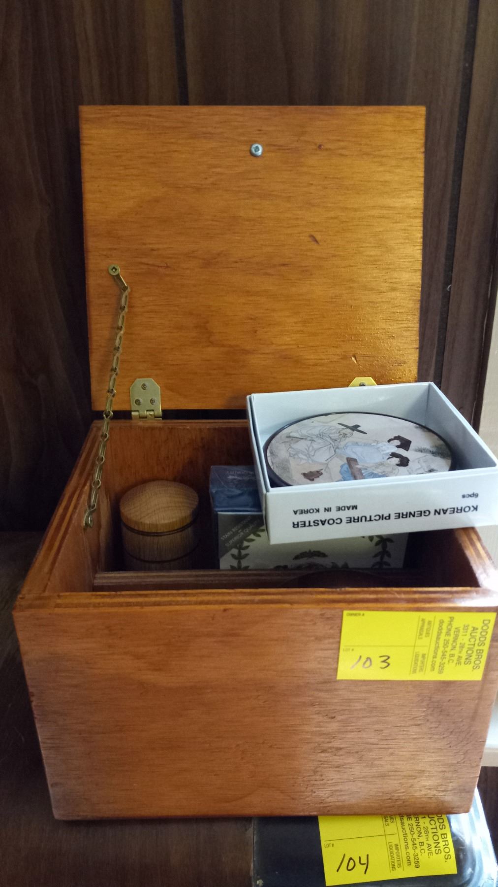 SM. WOODEN BOX W/ASST. COASTERS & WOODEN CONTAINERS