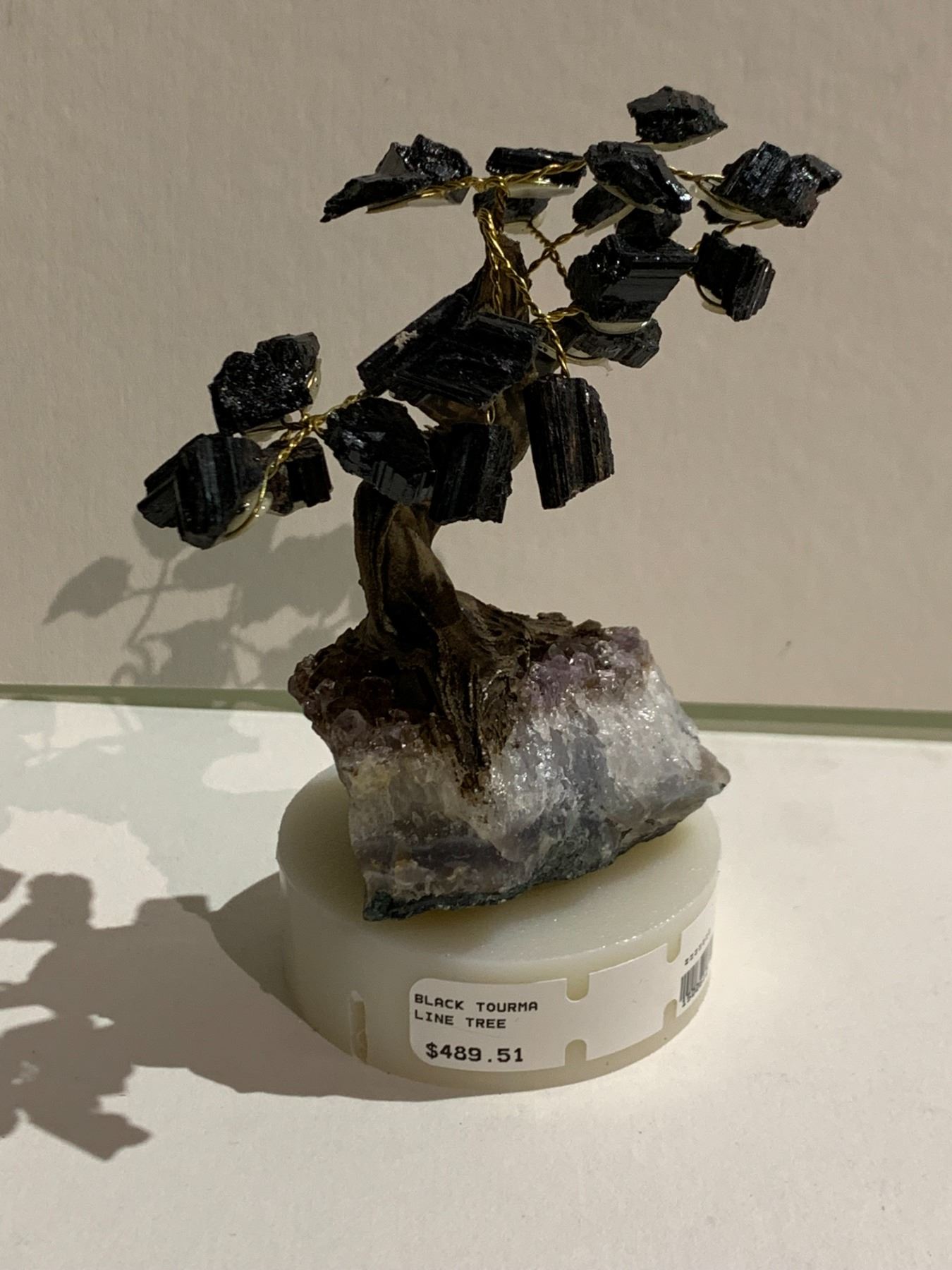 SMALL BLACK TOURMALINE TREE ON AMETHYST BASE RETAIL $489
