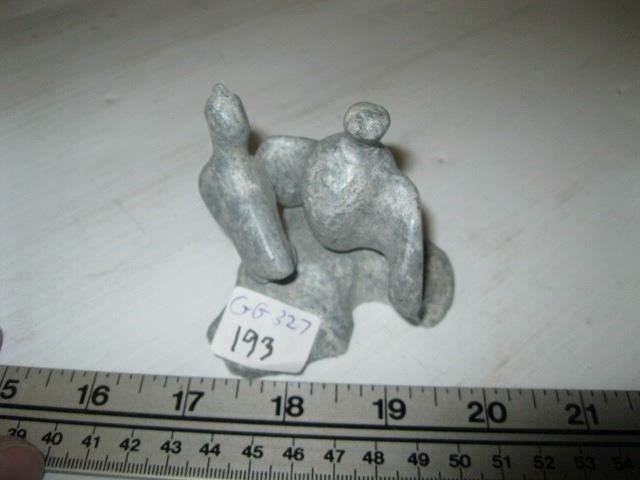SMALL CARVED FIGURINE OF 2 BIRDS, SIGNED/NUMBERED