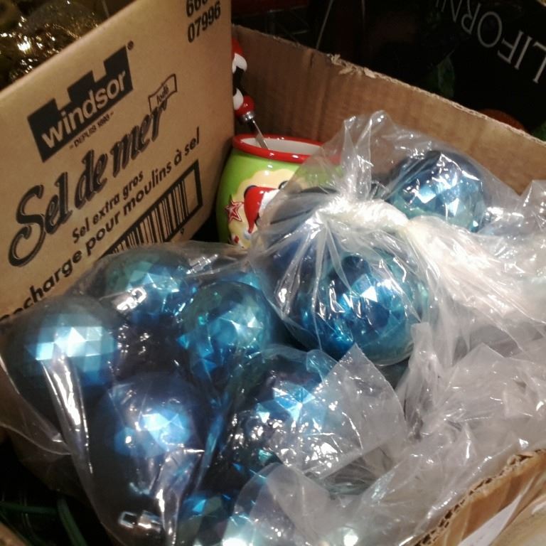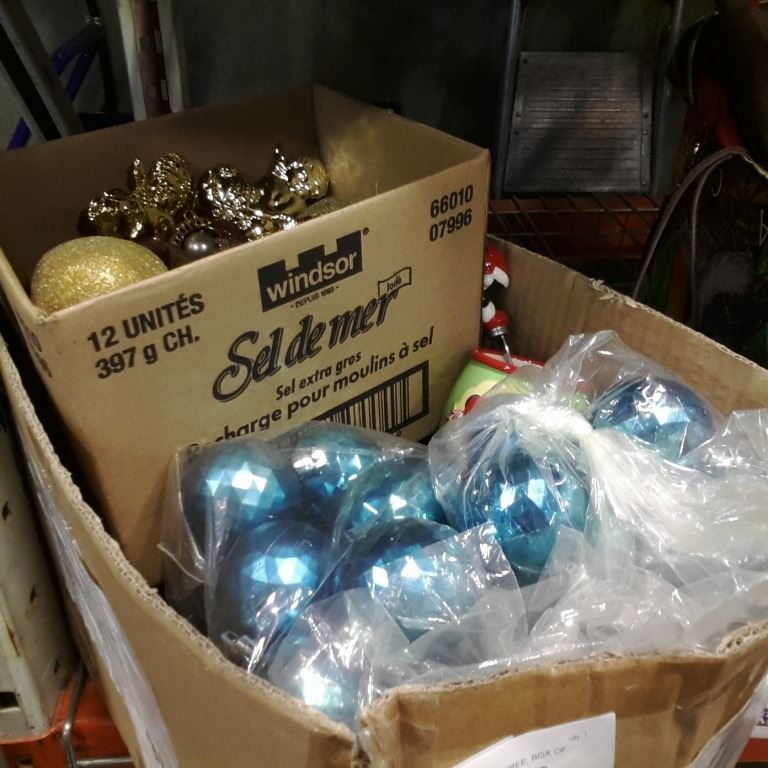 SMALL FIBEROPTIC XMAS TREE, BOX OF XMAS DECOR