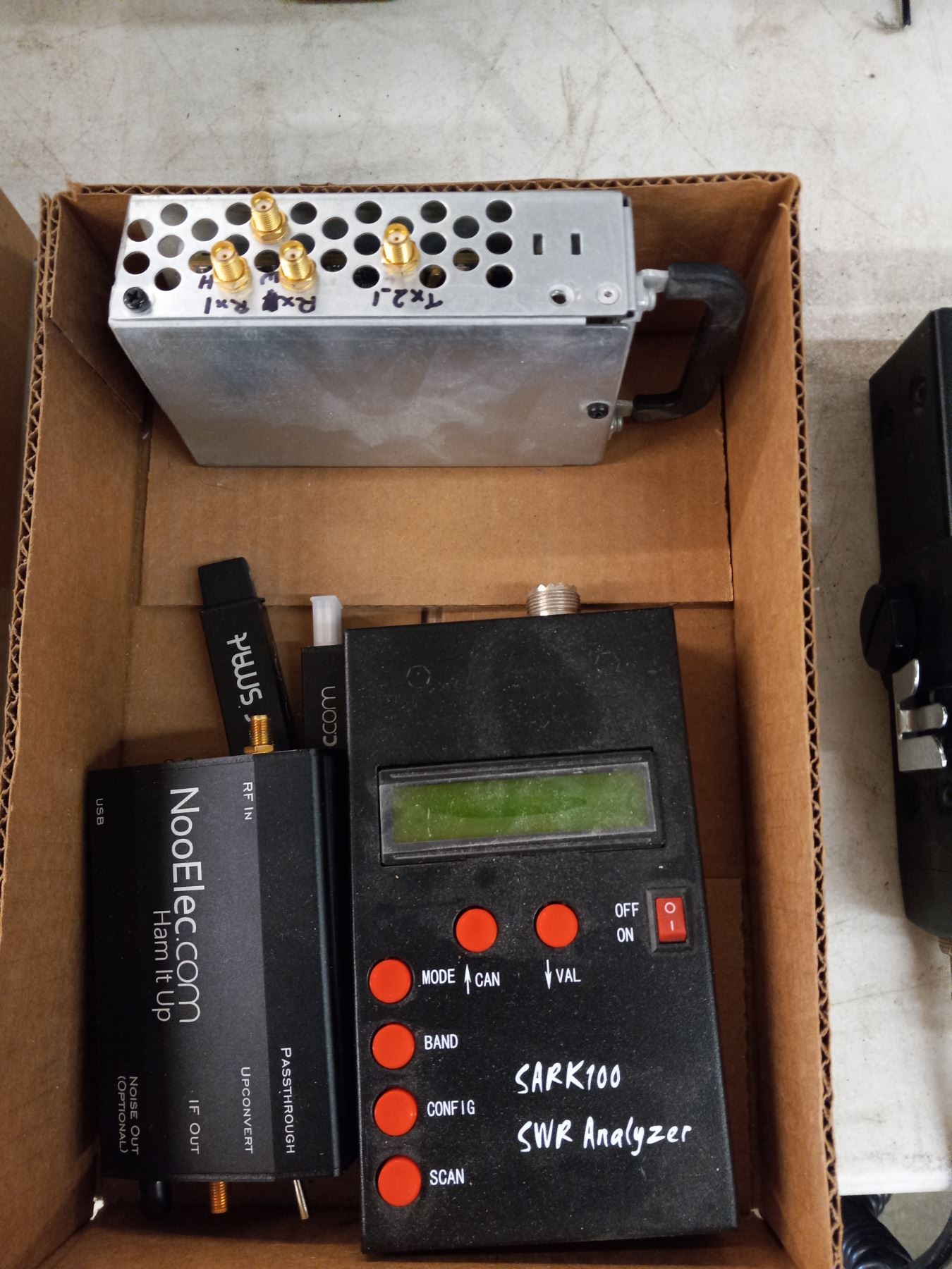 SMALL FLAT W/SW4 ANALYZER, NOOELEC PASSTHRU COMPONENT, ETC.