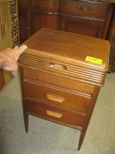 SMALL LIDDED WHITE SEWING MACHINE CABINET