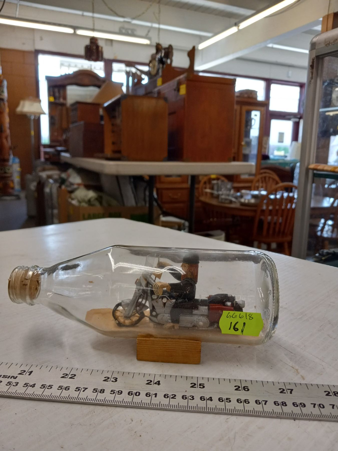 SMALL MOTORCYCLE FIGURINE IN A BOTTLE