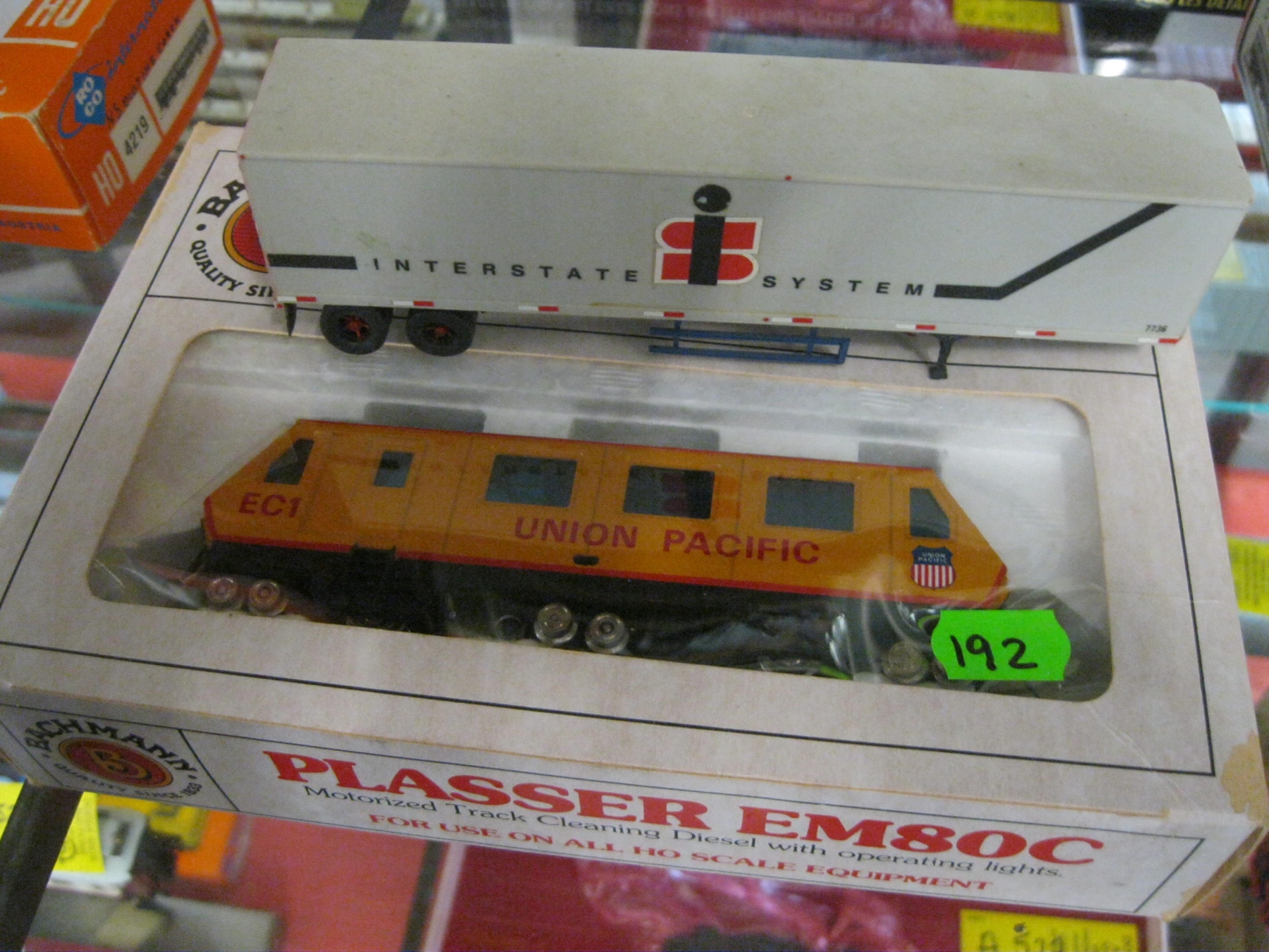 SMALL UNION PACIFIC TRAIN CAR & A PLASTIC SEMI TRAILER