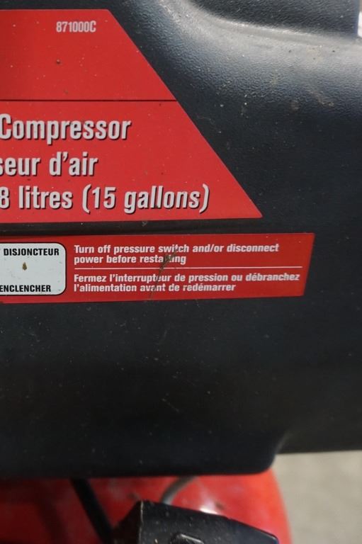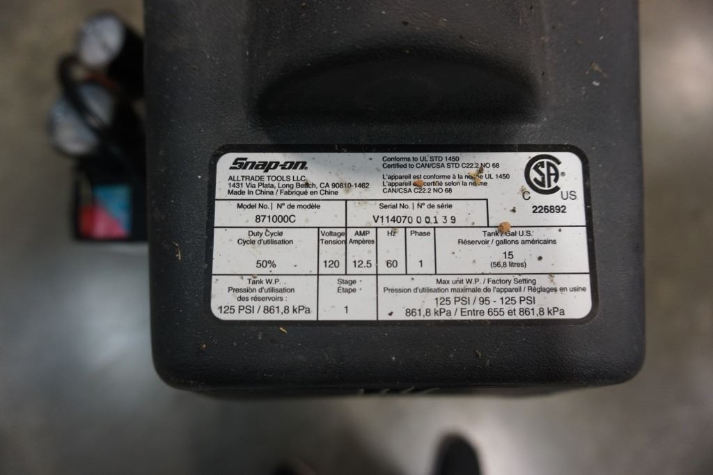 SNAP ON 15 GALLON AIR COMPRESSOR TESTED WORKING - NEEDS OIL