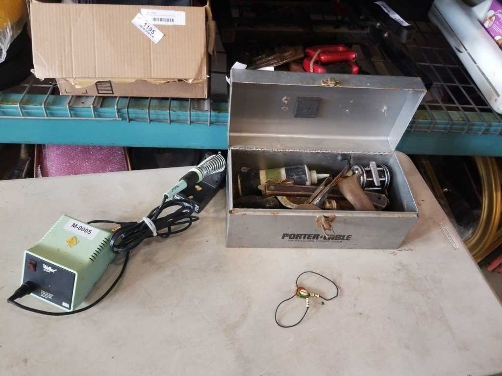 SOLDERING IRON AND TOOLBOX WITH CONTENTS, STANLEY PLANER