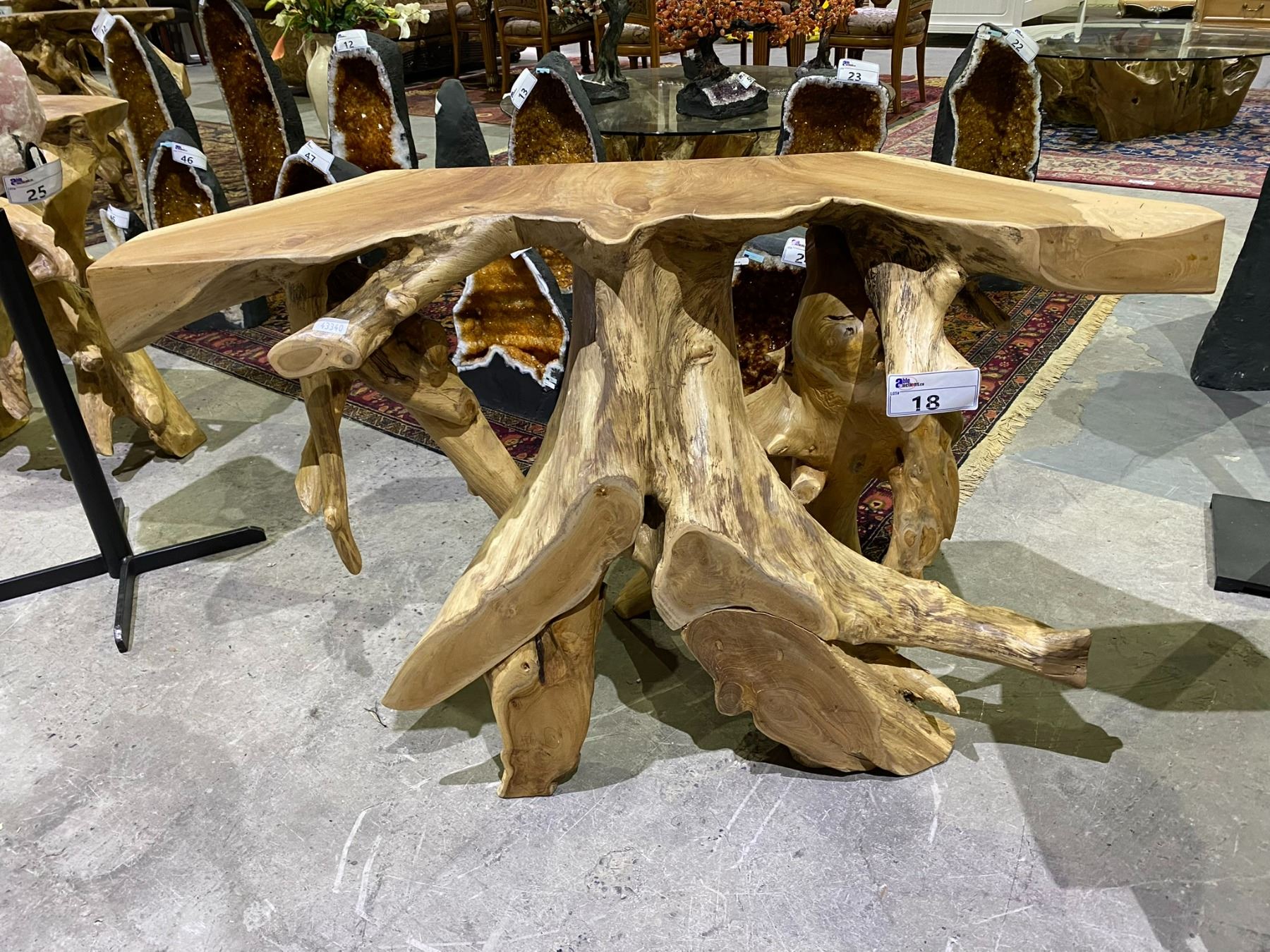SOLID TEAK ROOT CONSOLE TABLE APPROX 47" X 16"