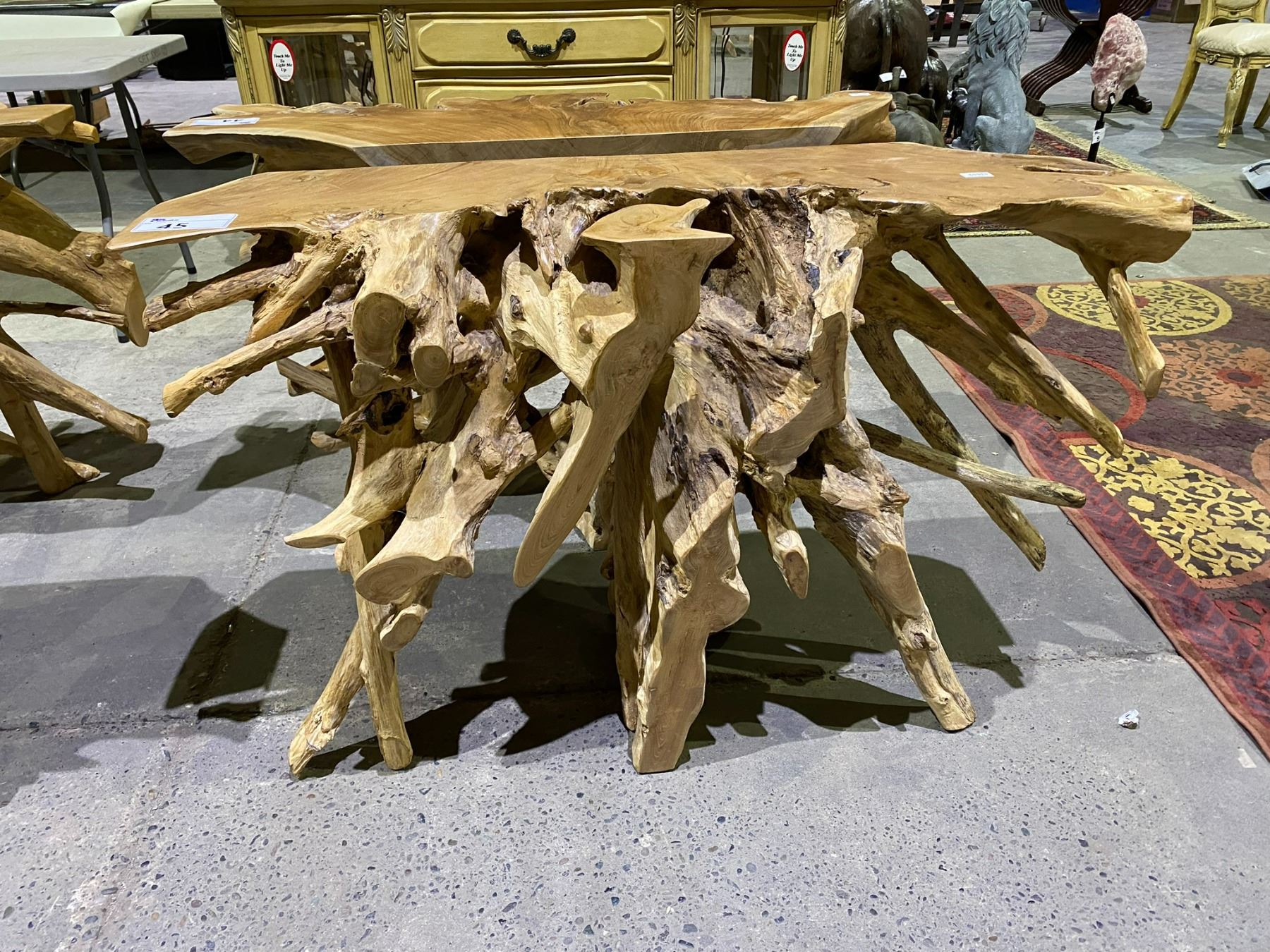 SOLID TEAK ROOT CONSOLE TABLE APPROX 48" X 16"