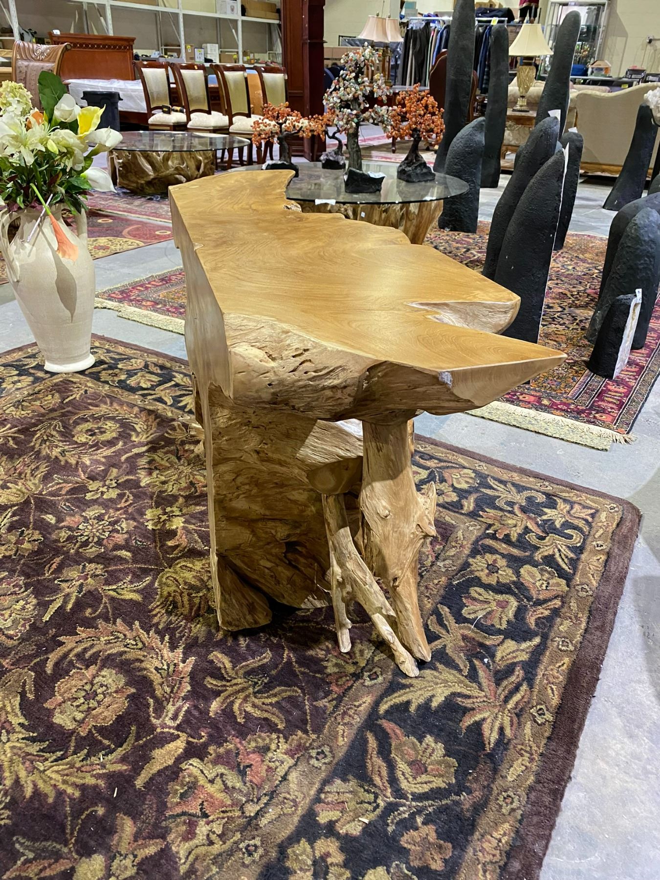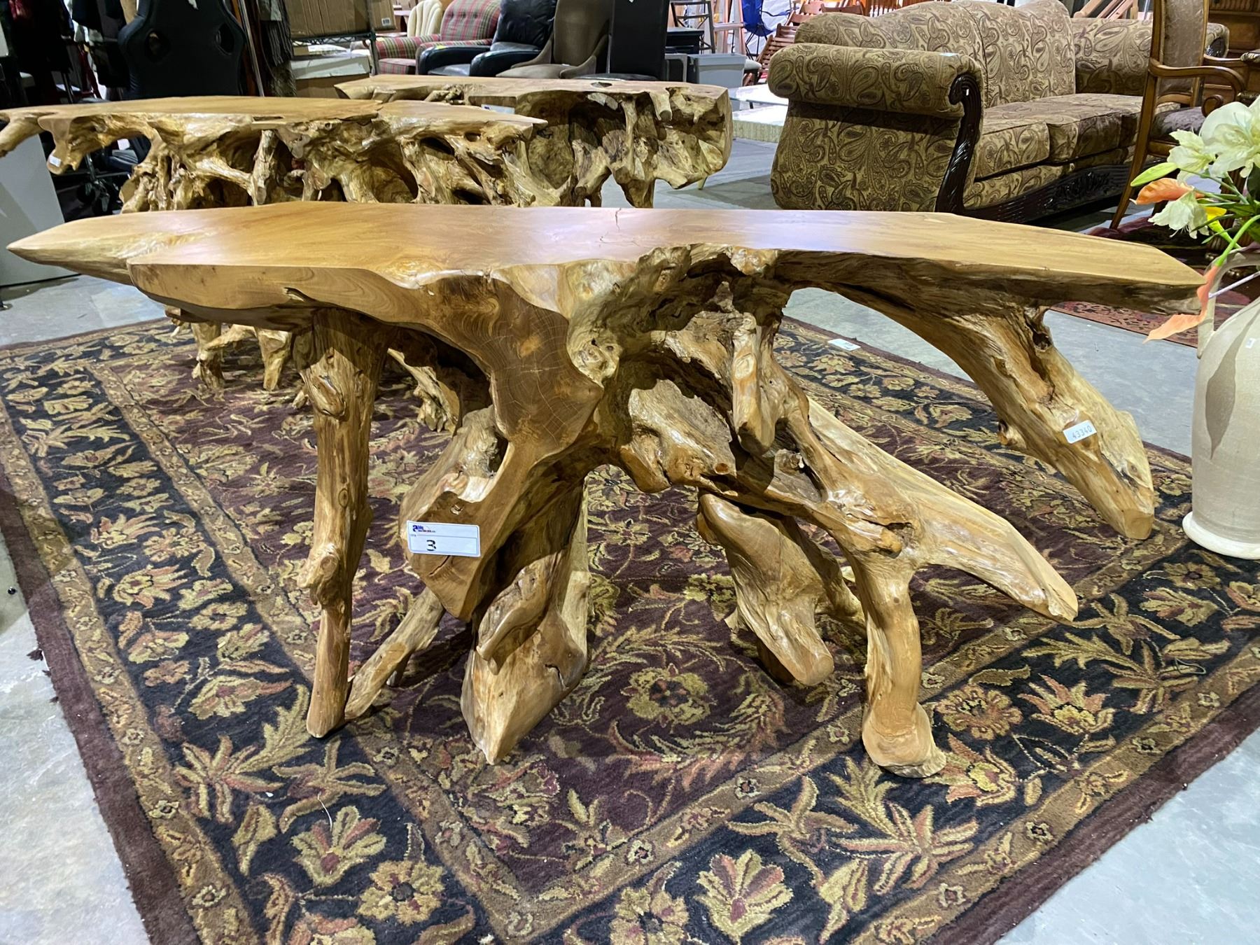 SOLID TEAK ROOT CONSOLE TABLE APPROX 59" X 16"
