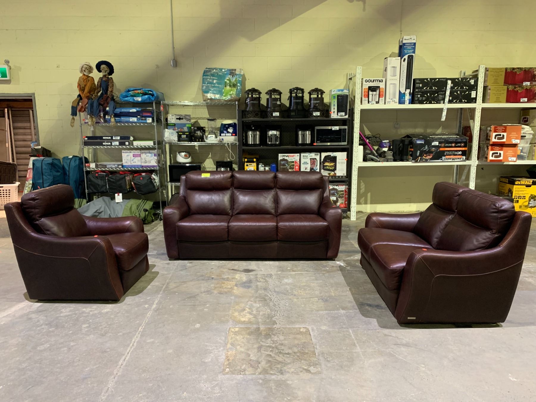 *SOME CONDITION ISSUES* SOFA ITALIA INTERNATIONAL LEATHER SOFA SET INCLUDING; SOFA, LOVE SEAT & LOUNGE CHAIR