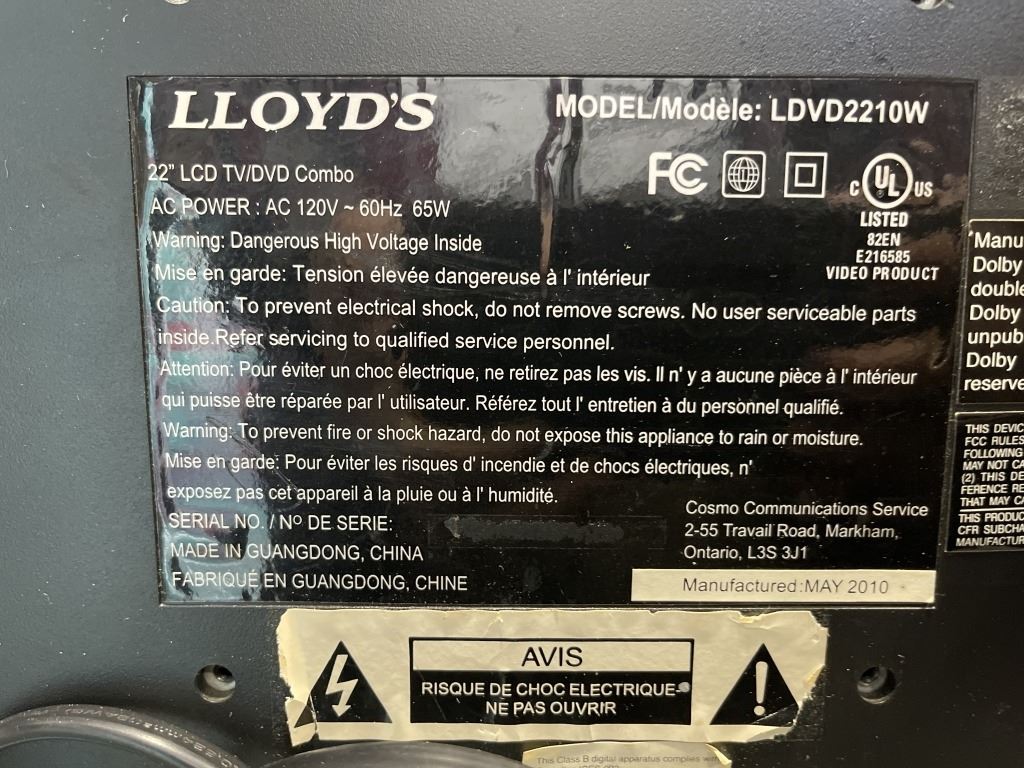 SONY BLU-RAY LG BLU-RAY AND LLOYD'S 22 INCH LCD DVD TV COMBO