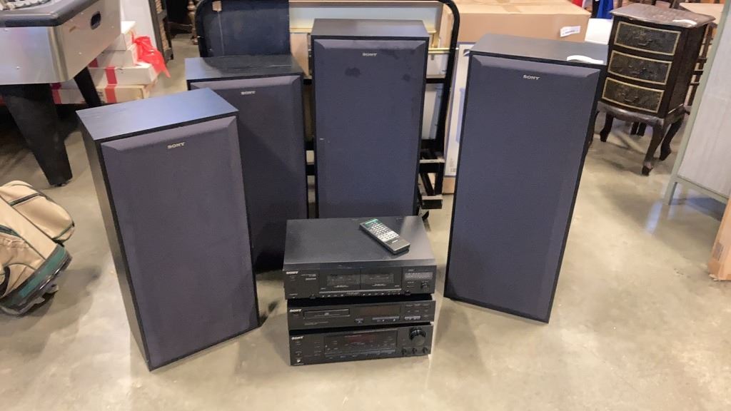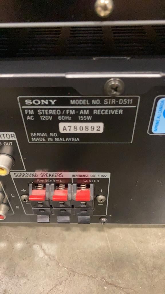 SONY STEREO SYSTEM - STR-D511 RECEIVER, CD PLAYER, AND FOUR SS-C420AV SPEAKERS