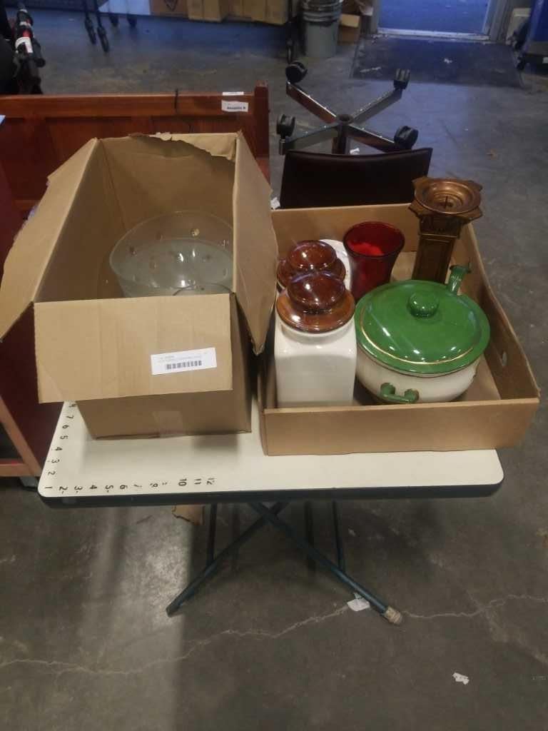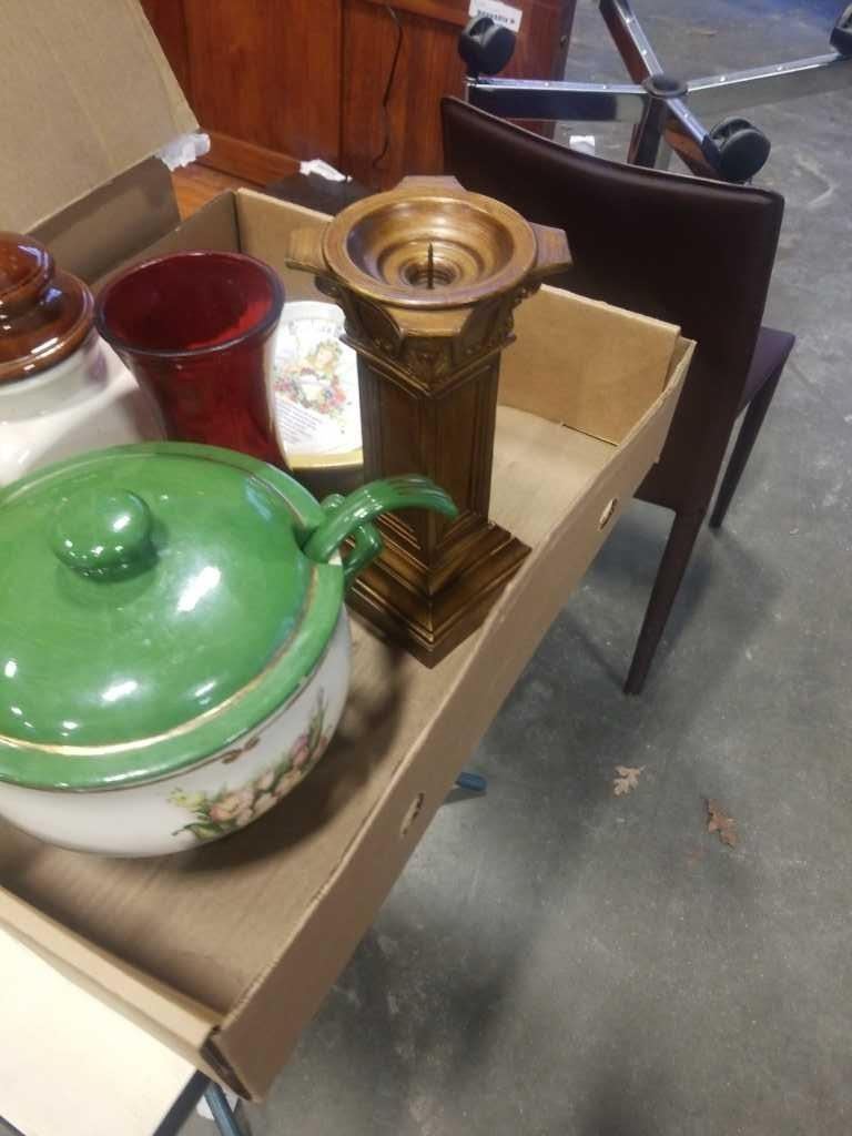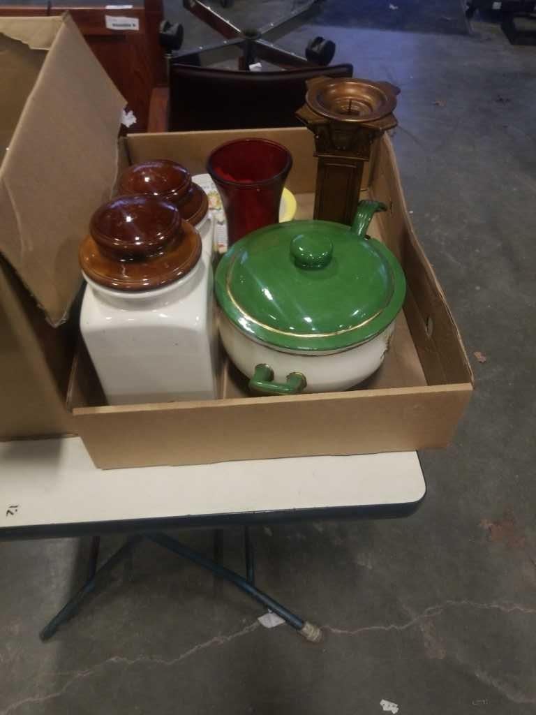 SOUP TUREEN, 2 CANNISTERS, GLASS VASES, PUNCH BOWLS