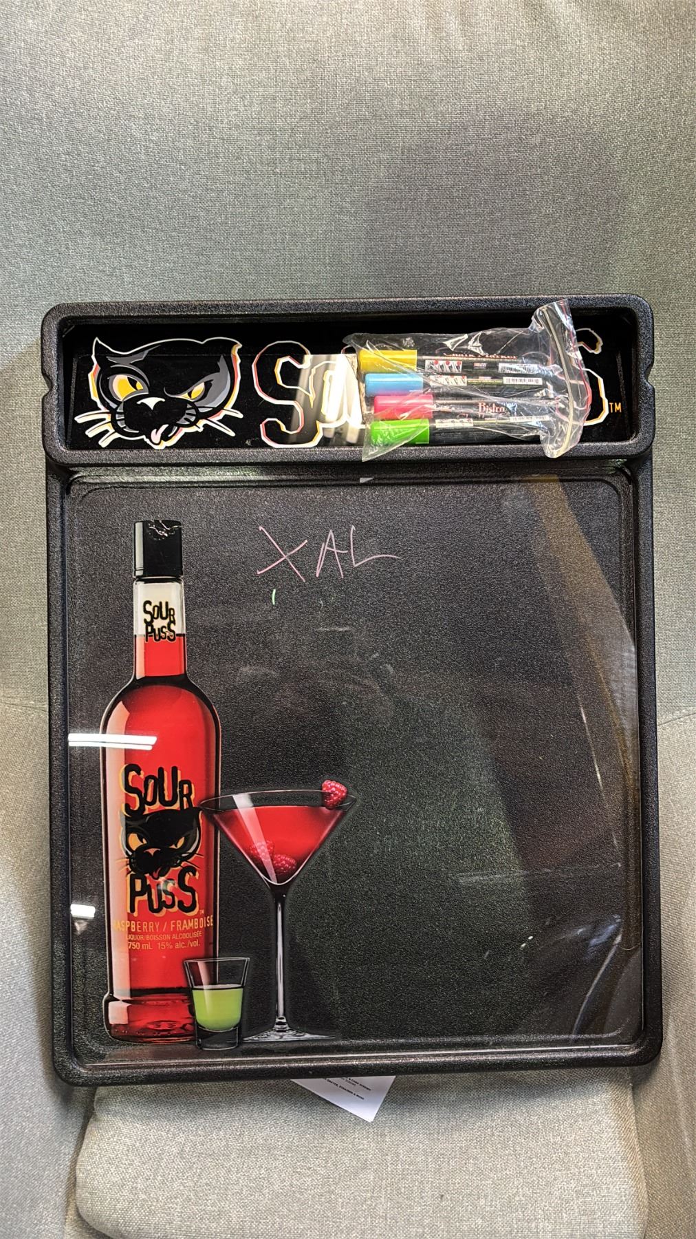 SOURPUSS BACKLIT WRITE-ON SIGN WITH DRY ERASE MARKERS - 24"T X 19"W X 2.5"D