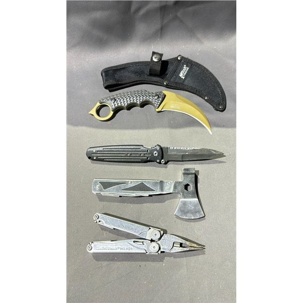 LOT OF ASSORTED KNIVES & MULTITOOLS INCLUDING; GERBER, LEATHERMAN, SHEFFIELD & M-TECH XTREME
