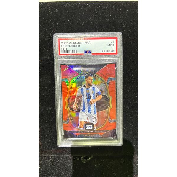 PSA 9 MINT 2022-23 PANINI SELECT FIFA #4 LIONEL MESSI RED CARD513 - PSA 9 MINT 2022-23 PANINI SELECT FIFA #4 LIONEL MESSI RED CARD