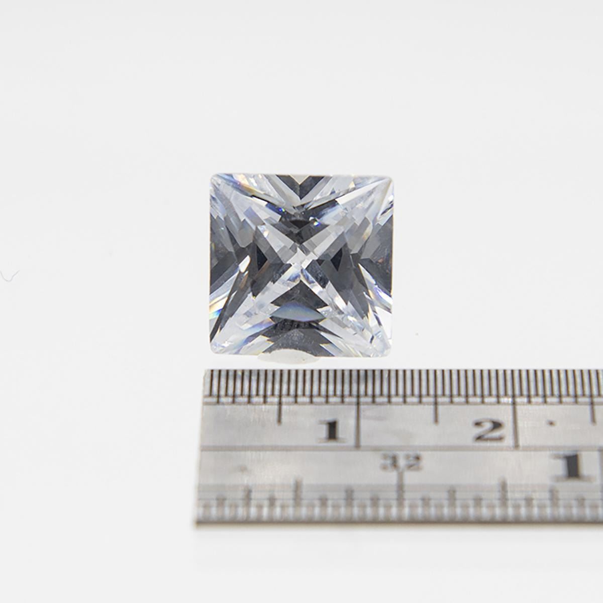Sparkling 14 ct fancy square cut lab created diamond. This lab created 14x14mm diamond is very radiant exhibiting bright bursts of multiple colors.