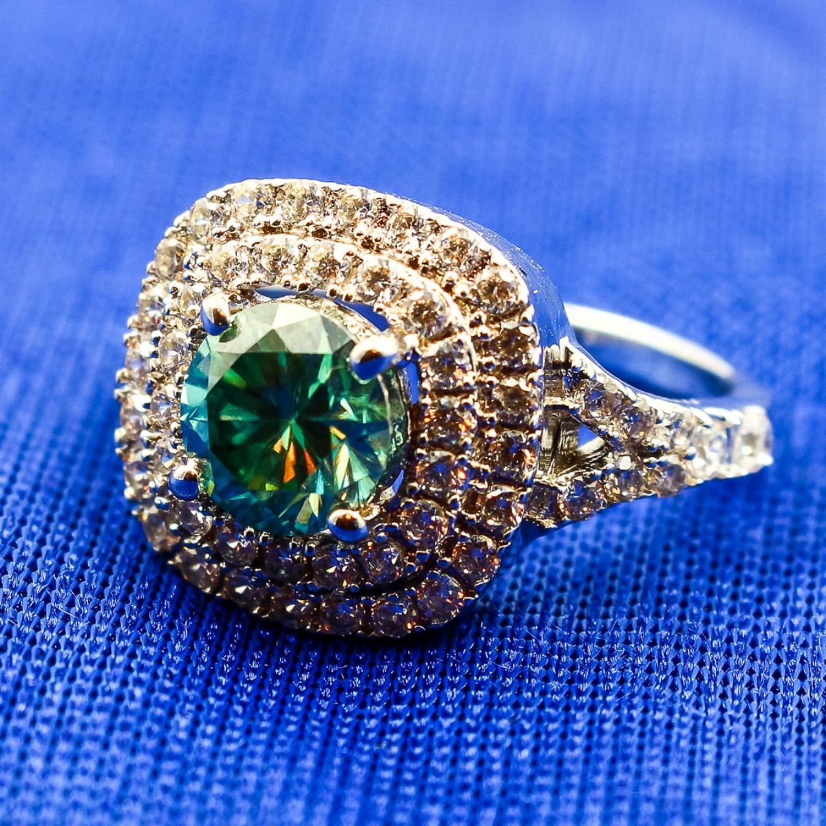 SPARKLING 2.5 CT MINT GREEN DIAMOND RING. THIS LAB CREATED DIAMOND IS A VVS1 BRILLIANT ROUND CUT. MOISSANITE IS THE WORLD'S MOST BRILLIANT GEM. WITH A REFRACTIVE INDEX OFf 2.65-2.69, MOISSANITE EXHIBITS MORE BRILLIANCE THAN A DIAMOND. AND THANKS TO A DISPERTION THAT'S 2.4 TIMES HIGHER THAN A DIAMOND, MOISANITE BENDS LIGHT INTO MESMERIZING RAINBOW ELECTRIC FLASHES OF FIRE... MORE THAN "TWICE " AS MUCH AS A DIAMOND. BY DAY AND BY NIGHT MOISANITES LEGENDARY BRILLANCE IS SPECTACULAR.THIS LAB DIAMOND WILL TEST POSITIVE FOR A DIAMOND ON ANY DIAMOND TESTER.NEAR FLAWLESS AND READY TO MOUNT. THE TOTAL GRAM WT IS 3.8 GRAMS. SIZE 7 1/2.