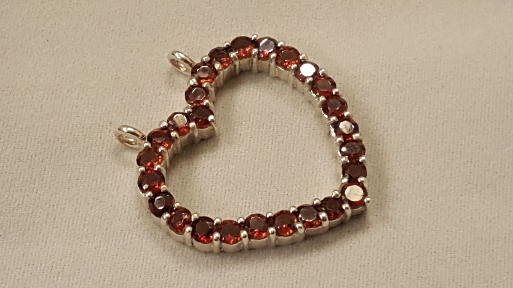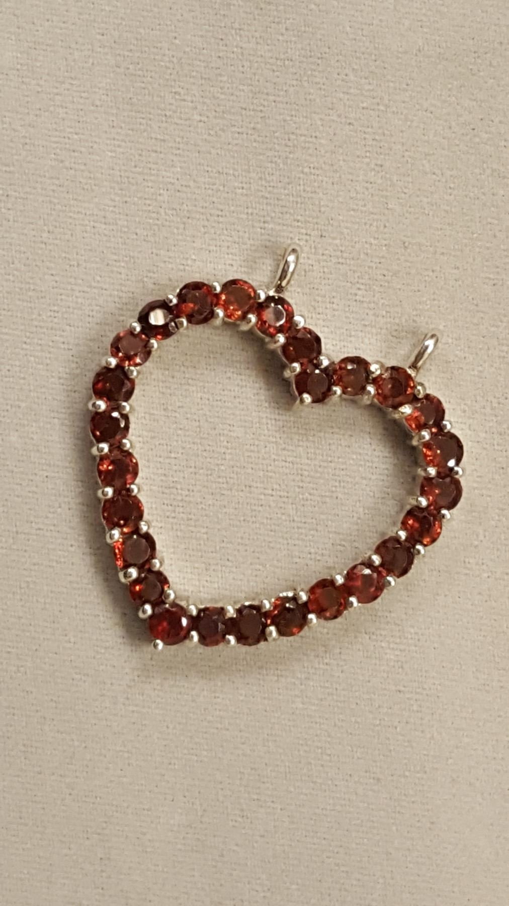 SPARKLING 8.35 CT NATURAL RED GARNET HEART PENDANT. THESE NEAR FLAWLESS GEMSTONES ARE MOUNTED IN SOLID .925 STERLING SILVER. 25 CTTW OR 5. GRAMS