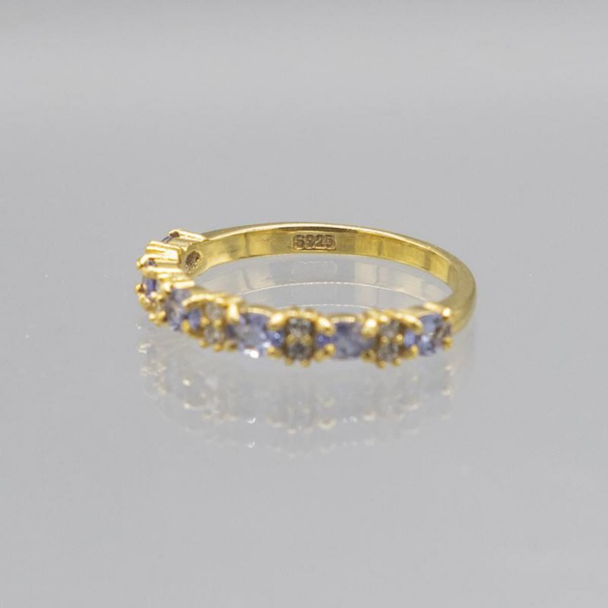 BREATHTAKING NATURAL VIOLET BLUE TANZANITE RING.SPECTACULAR FLASHES OF RED AND BLUE. MOUNTED IN 14 Kt YELLOW GOLD OVER .925 STERLING SILVER. SIZE 8 NEAR FLAWLESS.1.9 TOTAL GRAM WT.