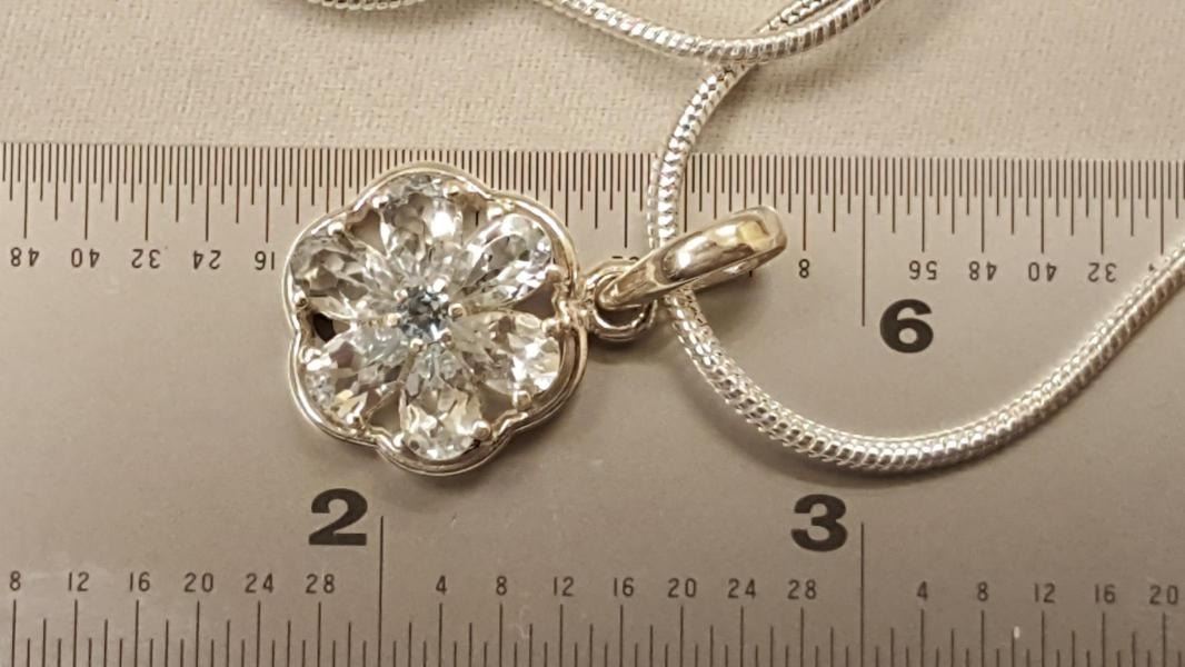 SPARKLING SKY BLUE TOPAZ PENDANT. THESE NEAR FLAWLESS GEMSTONES ARE MOUNTED IN SOLID .925 STERLING SILVER. 65 CTTW OR 12.8 GRAMS