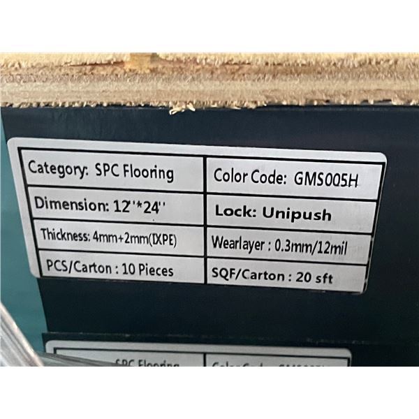 SPC Flooring - Colour: GMGS005H - Size: 12in x 24in x 10mm - Total sqf: 960 - 48 boxes - Thickness: 4mm/Wearlayer:0.3mm/Underlay Embossed: 2mm - Sq/box: 20 - Bidding by the Square Feet