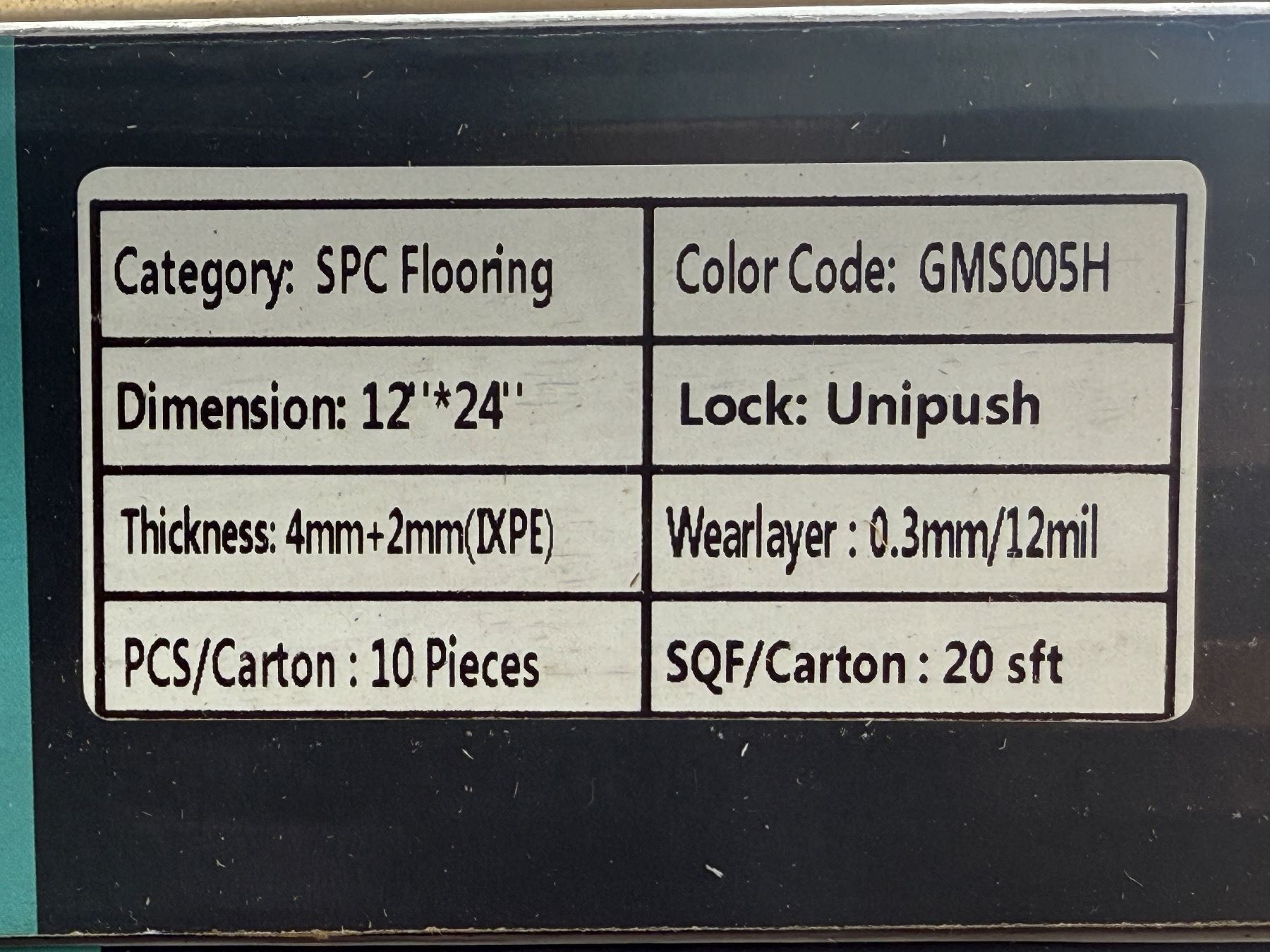 SPC Flooring - Colour: GMGS005H - Size: 12in x 24in x 10mm - Total sqf: 960