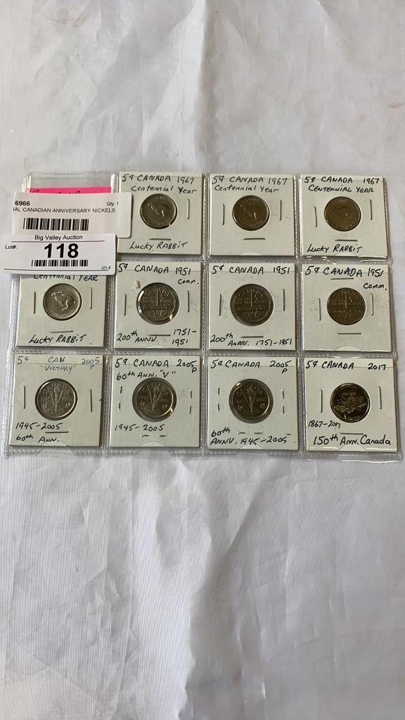 SPECIAL CANADIAN ANNIVERSARY NICKELS 1867-1967, 1751-1951, 1945-2005, 1867-1967