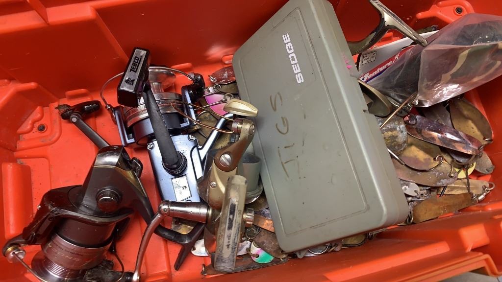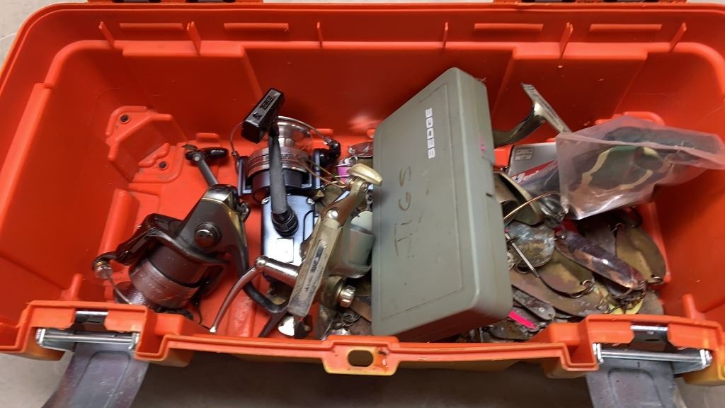 SPITFIRE TOOLBOX WITH FISHING REELS, FLASHERS, LURES