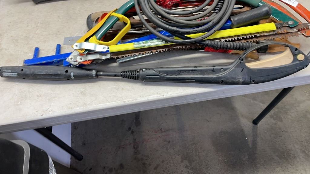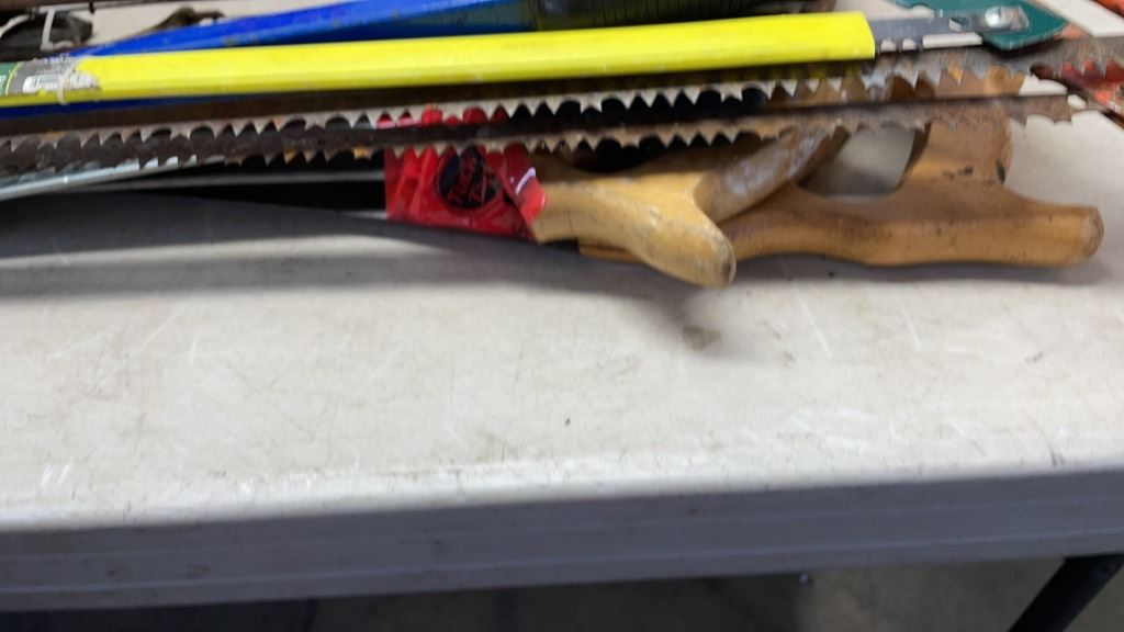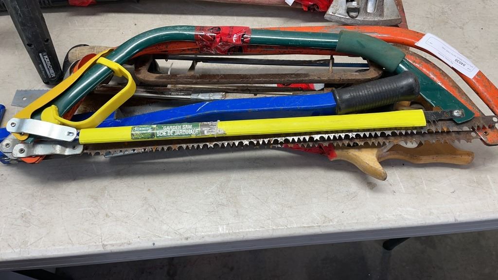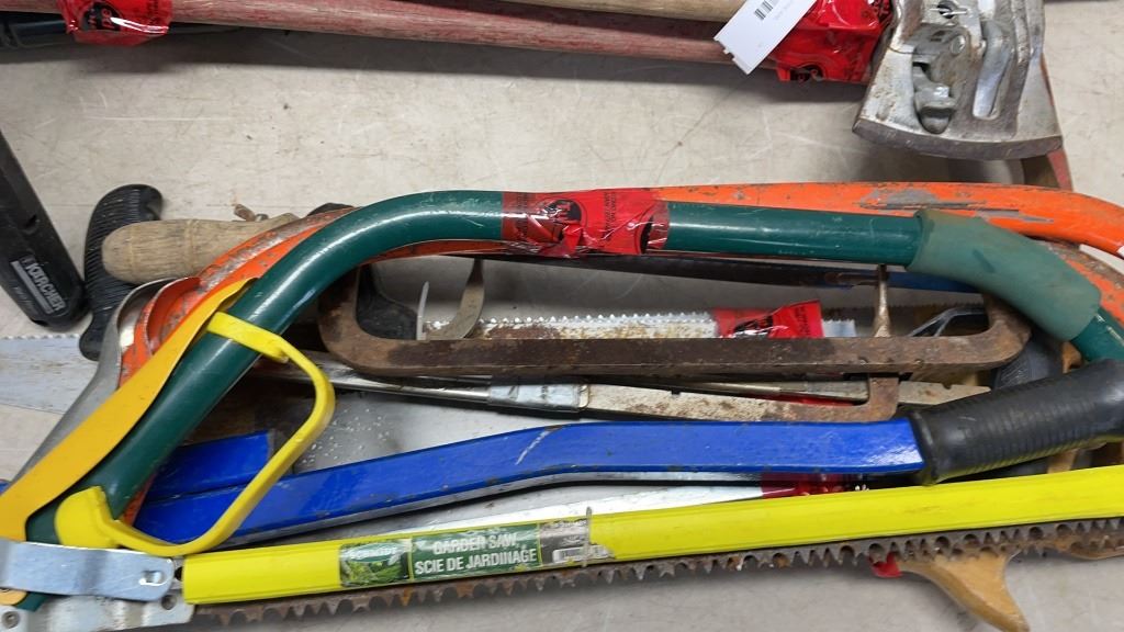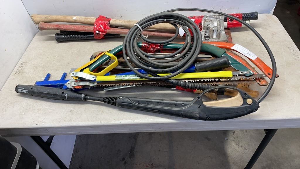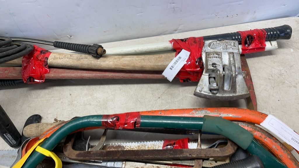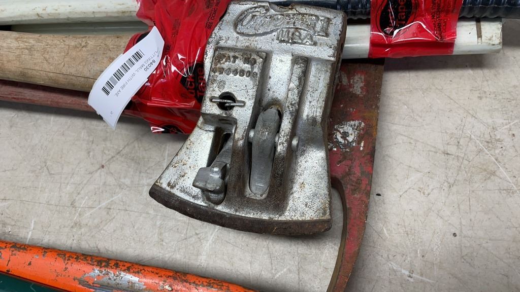 SPLITTING MAUL WITH FIRE AXE, FIBERGLASS HANDLES AND HANDSAWS