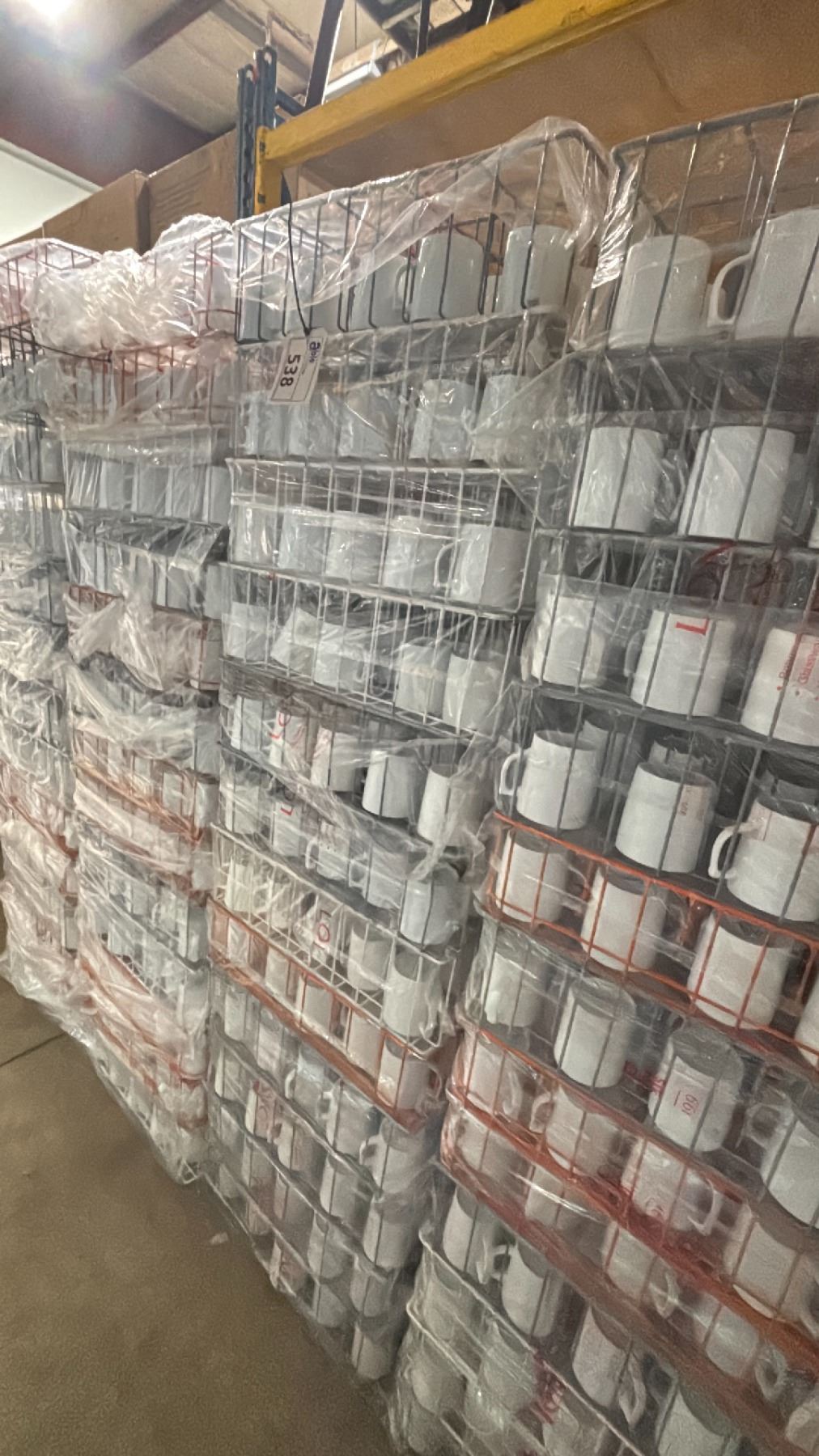 STACK OF 12 COMMERCIAL RESTAURANT TRAYS OF WHITE COFFEE MUGS *TRAYS INCLUDED* ( APPROX. 240 PCS )