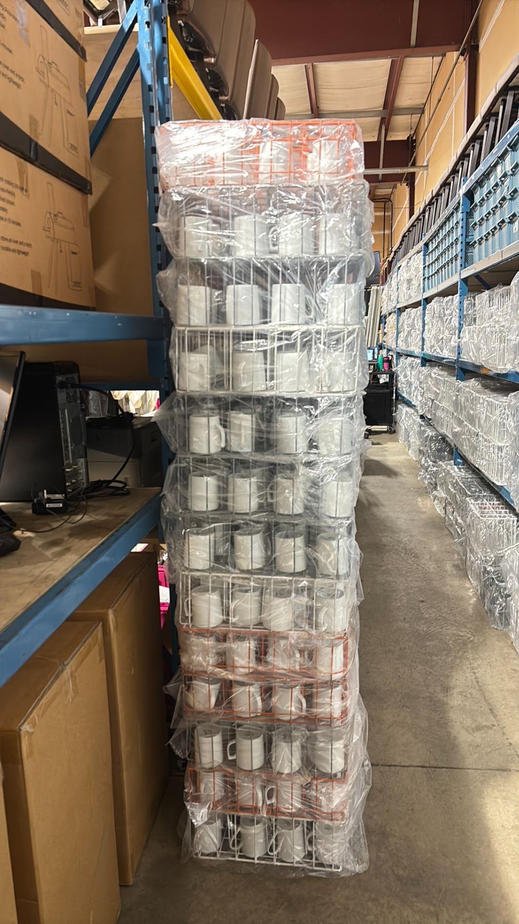 STACK OF 13 COMMERCIAL RESTAURANT TRAYS OF WHITE COFFEE MUGS *TRAYS INCLUDED* ( APPROX. 260 PCS )