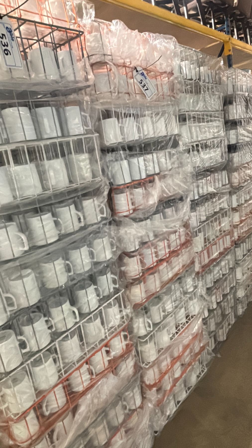 STACK OF 13 COMMERCIAL RESTAURANT TRAYS OF WHITE COFFEE MUGS *TRAYS INCLUDED* ( APPROX. 260 PCS )