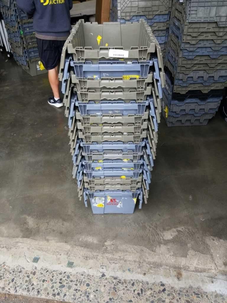 STACK OF 15 TOTES WITH BUILT IN INTERLOCKING LIDS