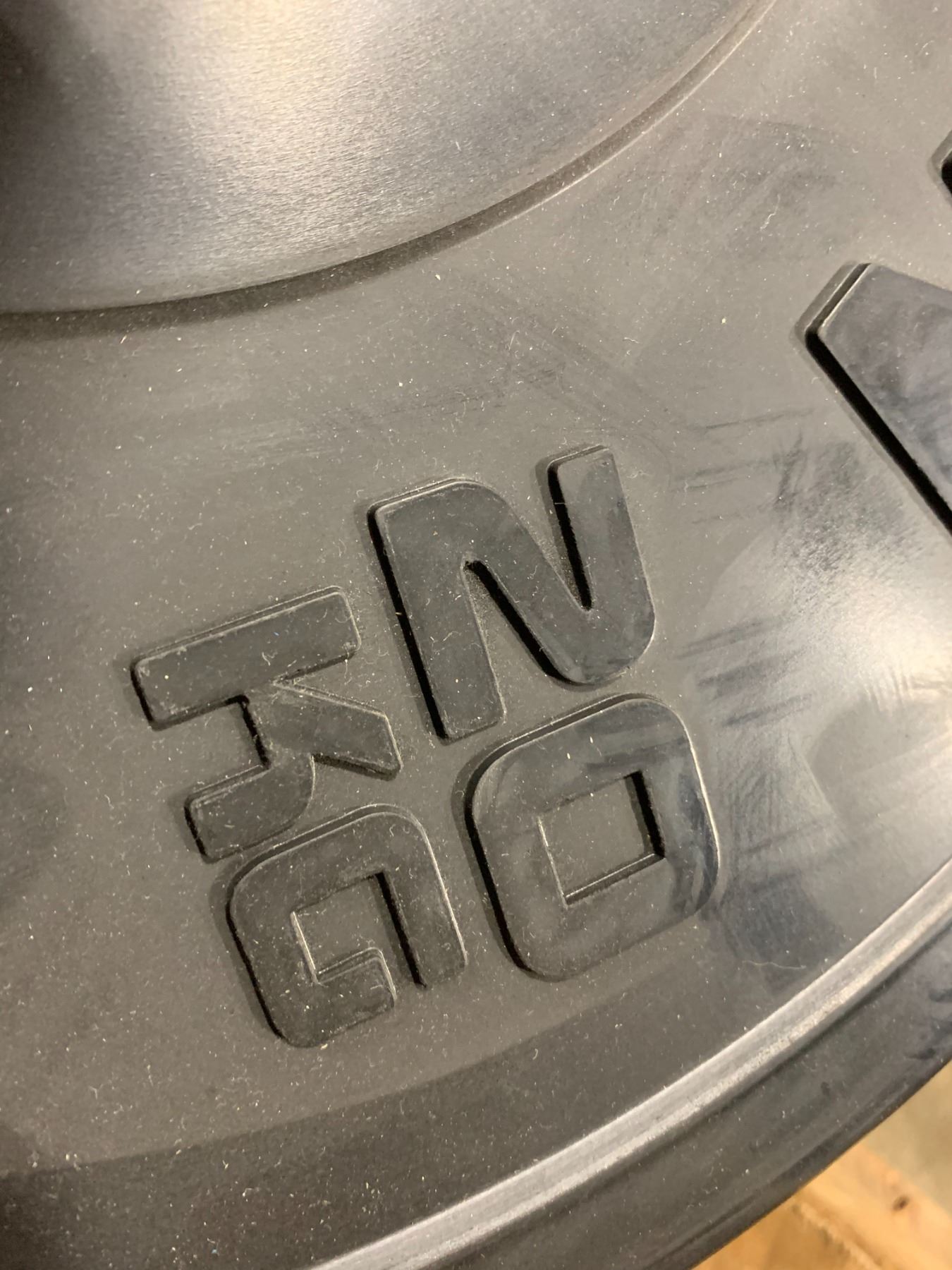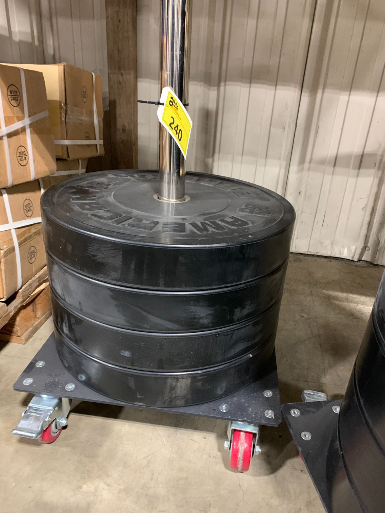 STACK OF 4 NEW AMERICAN BARBELL COMMERCIAL 20 KG FREE WEIGHT RUBBER BUMPERS ON MOBILE FREE WEIGHT BUMPER STAND *BLACK*