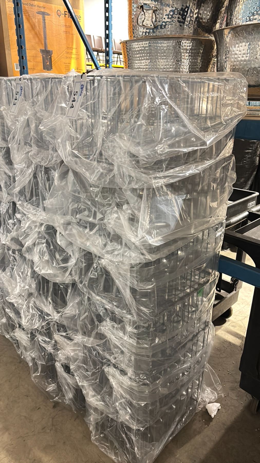 STACK OF 6 COMMERCIAL RESTAURANT TRAYS OF JUICE GLASSES *TRAYS INCLUDED* ( APPROX. 120 PCS )