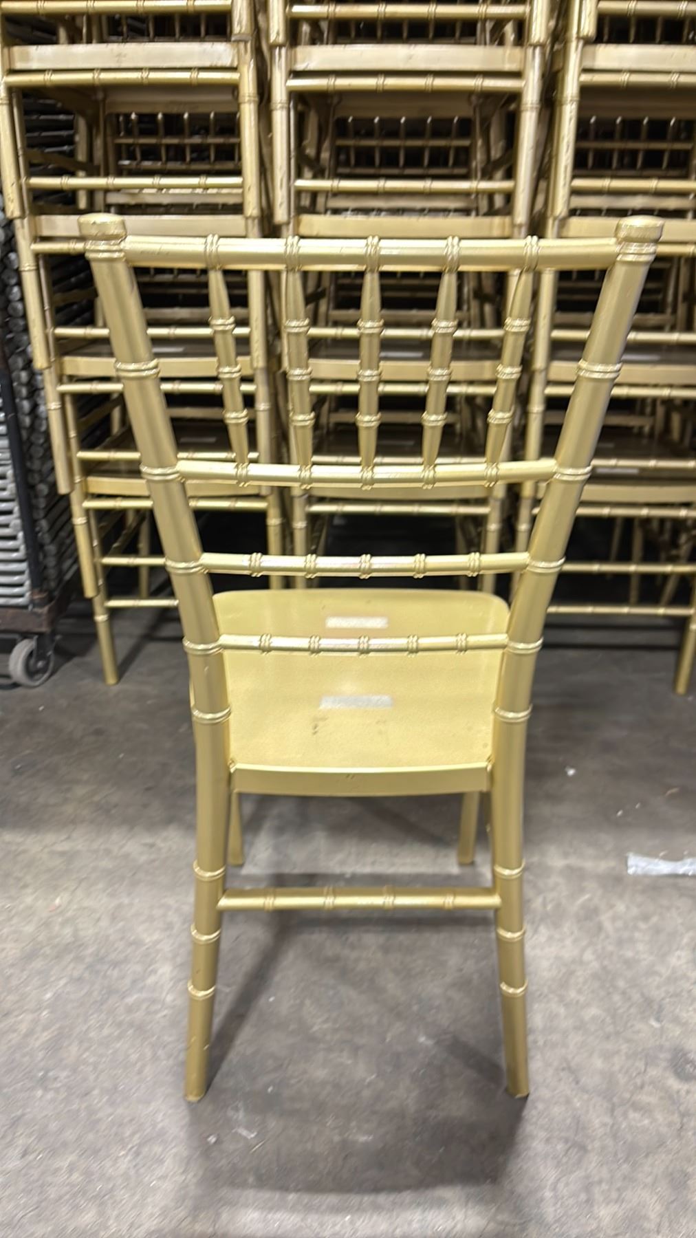 STACK OF 9 GOLD RESIN CHIAVARI EVENT 18" CHAIRS